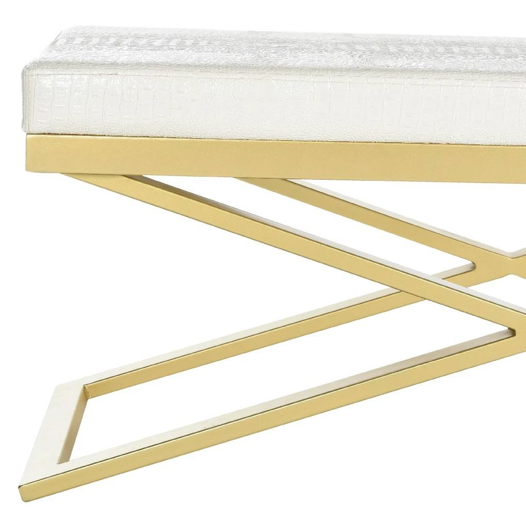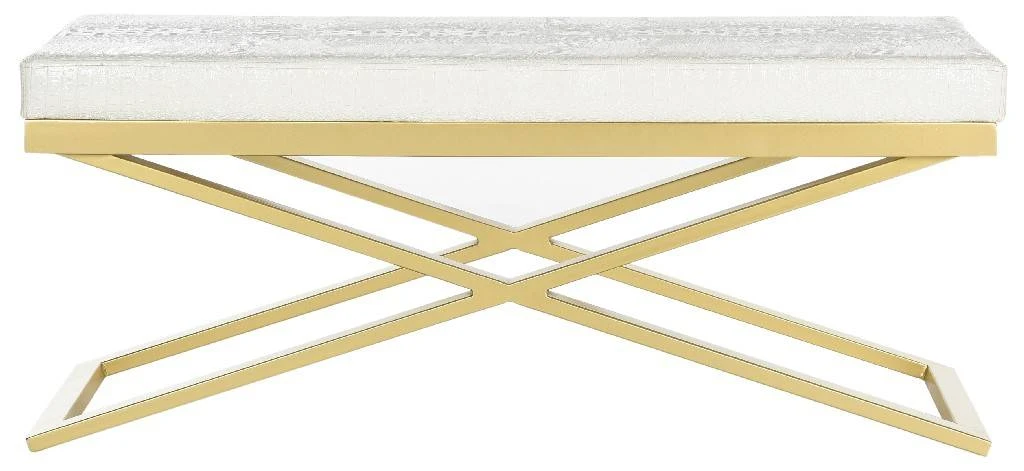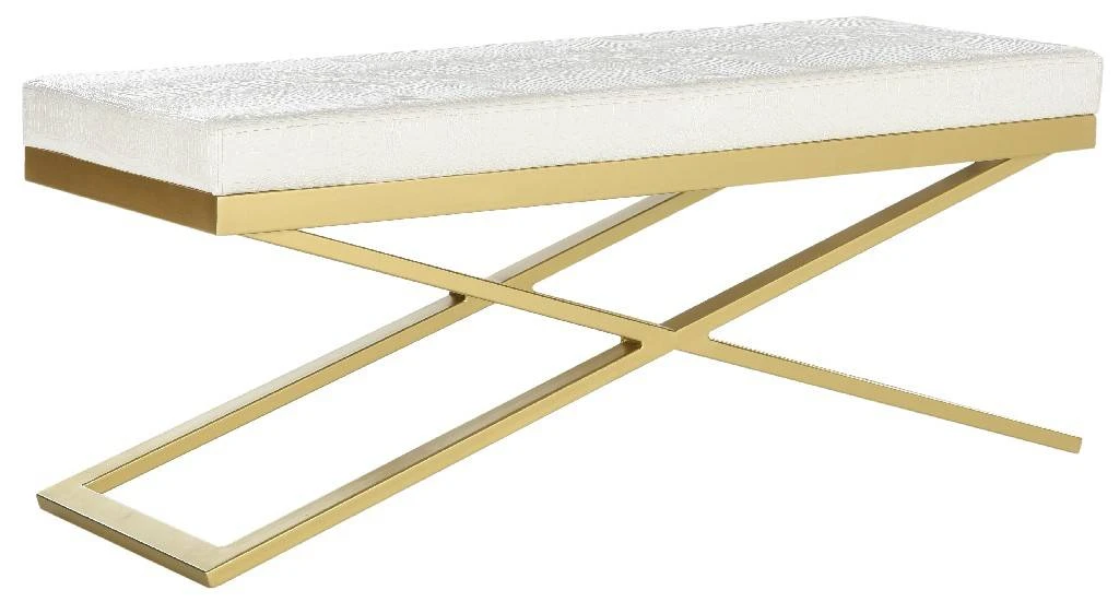 Inspired by the glamour of Park Avenue’s most stunning interiors, this bench brings soft modern style to any interior. Its stunning white crocodile PU leather upholstery pairs beautifully with the refined gold finish.
