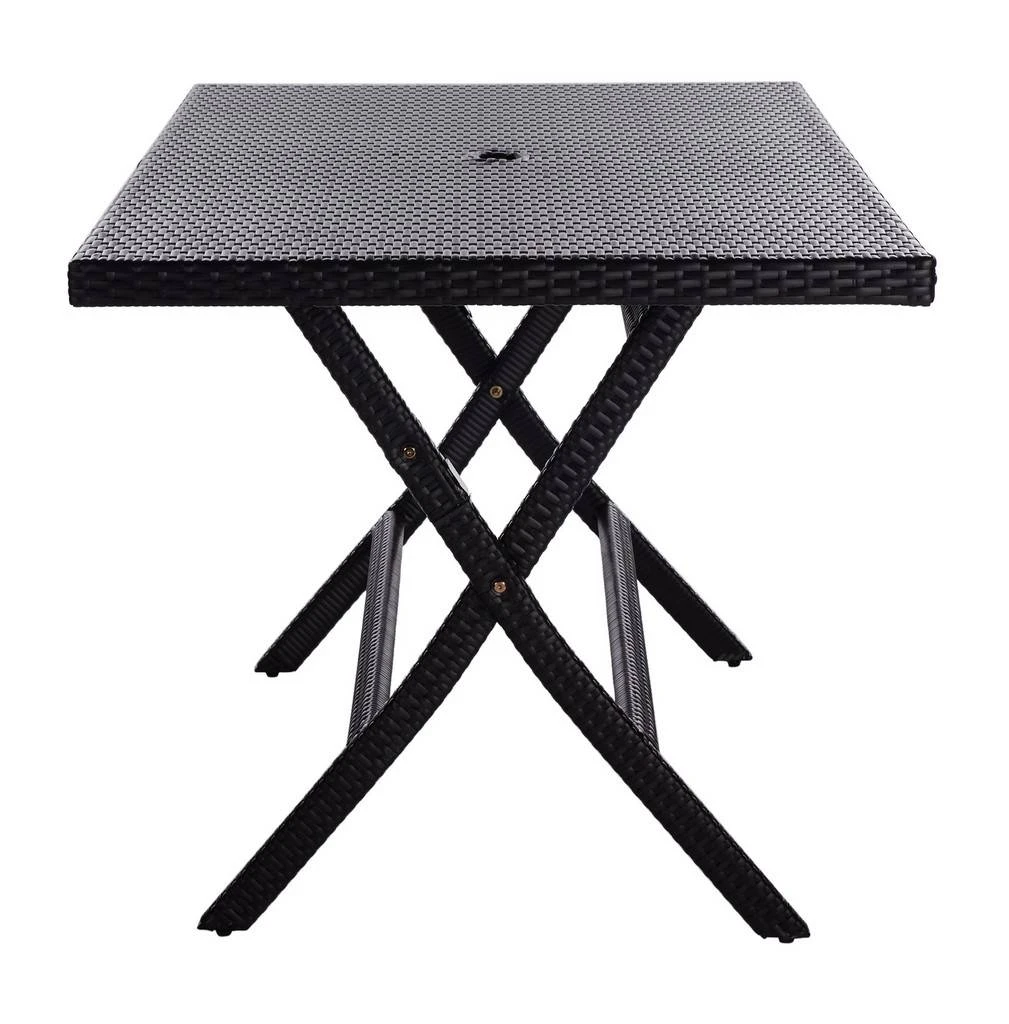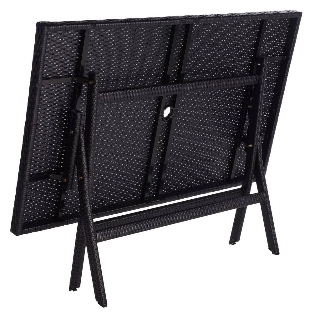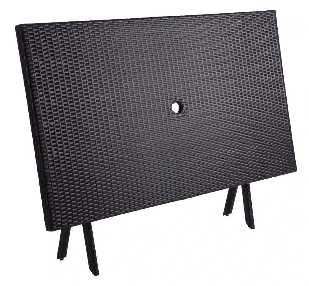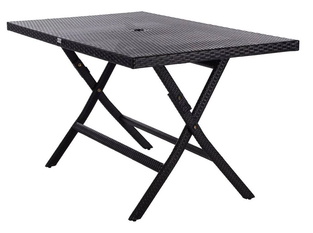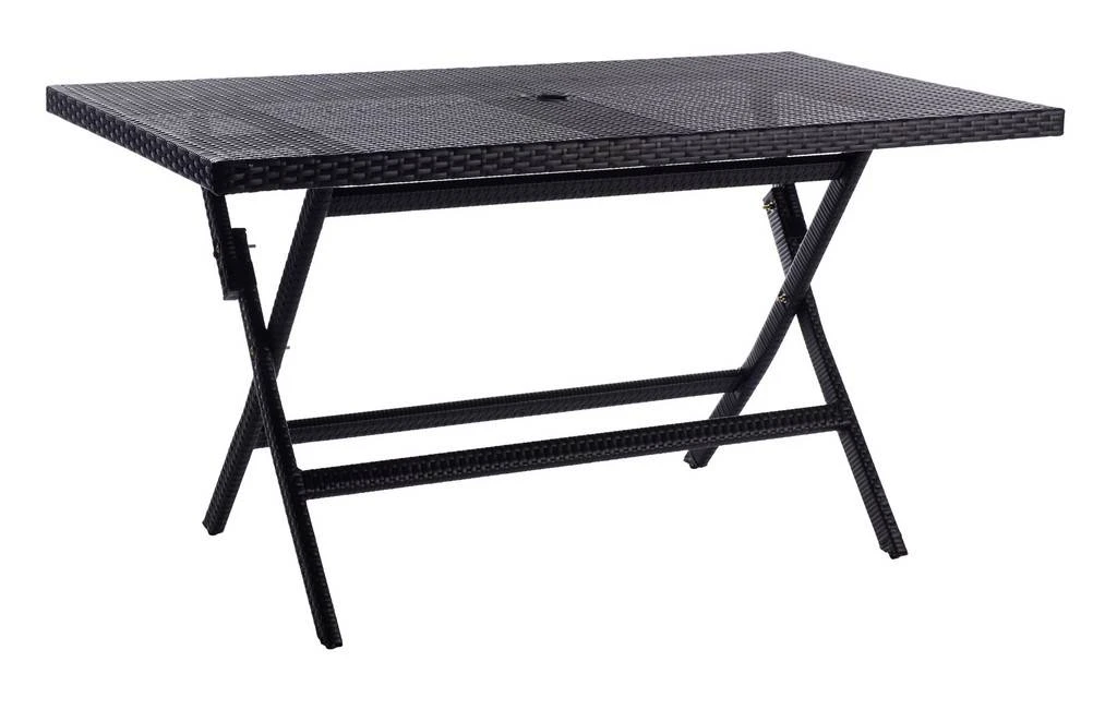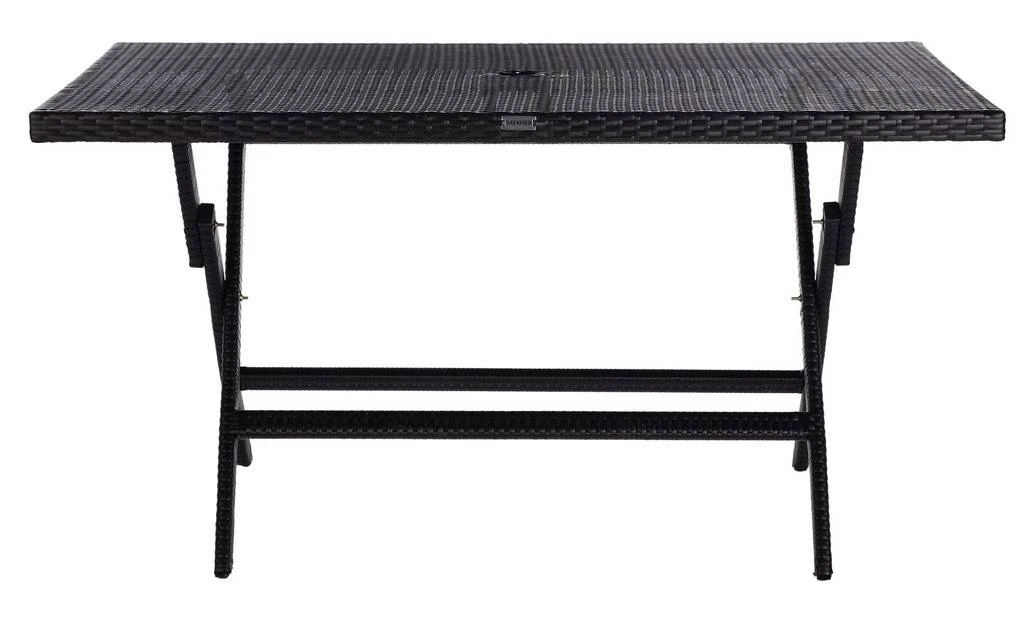 The Akita Table perfectly blends the functionality of a folding table with the high style needed for chic dining. Styled in forever fashionable black, Akita’s texture rich surface features a cut out in the center for umbrellas, allowing you stay protected from the sun’s harsh rays.