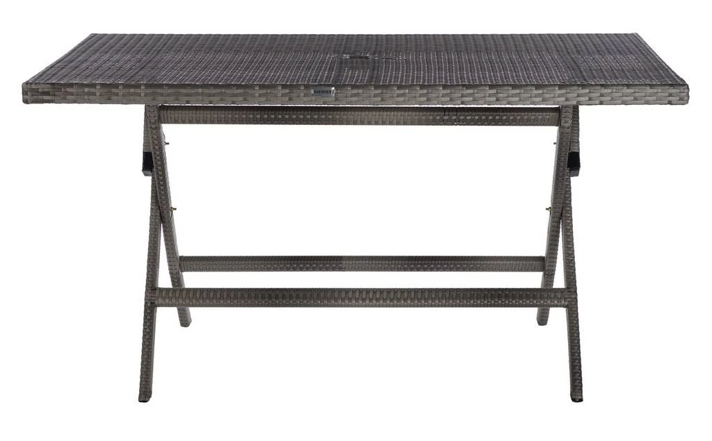 The Akita Table perfectly blends the functionality of a folding table with the high style needed for chic dining. Styled in décor smart grey, Akita’s texture rich surface features a cut out in the center for umbrellas, allowing you stay protected from the sun’s harsh rays.