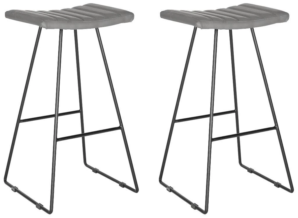 Raise the bar for style in the kitchen or family room with the airy look and clean silhouette of the Akito bar stool. A comfy channel-quilted seat of grey PU leather rests atop a whisper thin A-line frame of iron supported by sturdy crossbars.
