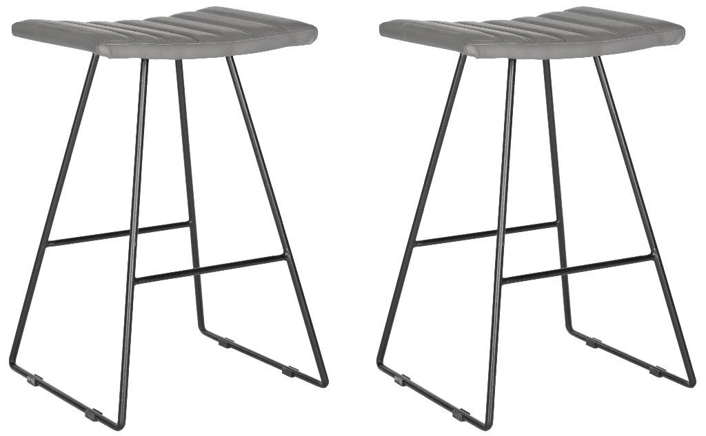 Raise the bar for fashion in the kitchen or family room with the airy look and clean silhouette of the Akito counter stool. A comfy channel-quilted seat of grey PU leather rests atop a whisper thin A-line frame of iron supported by sturdy crossbars.