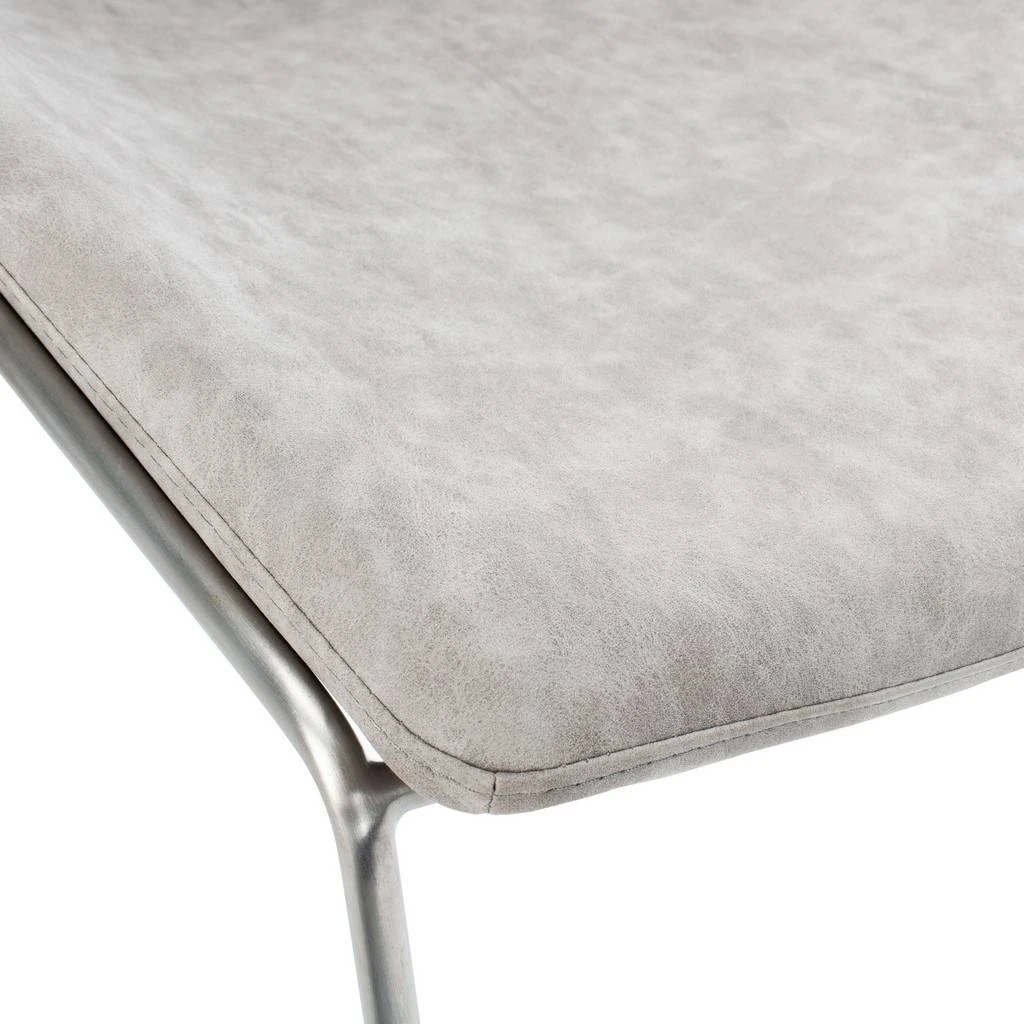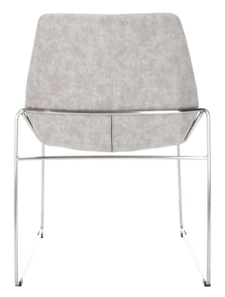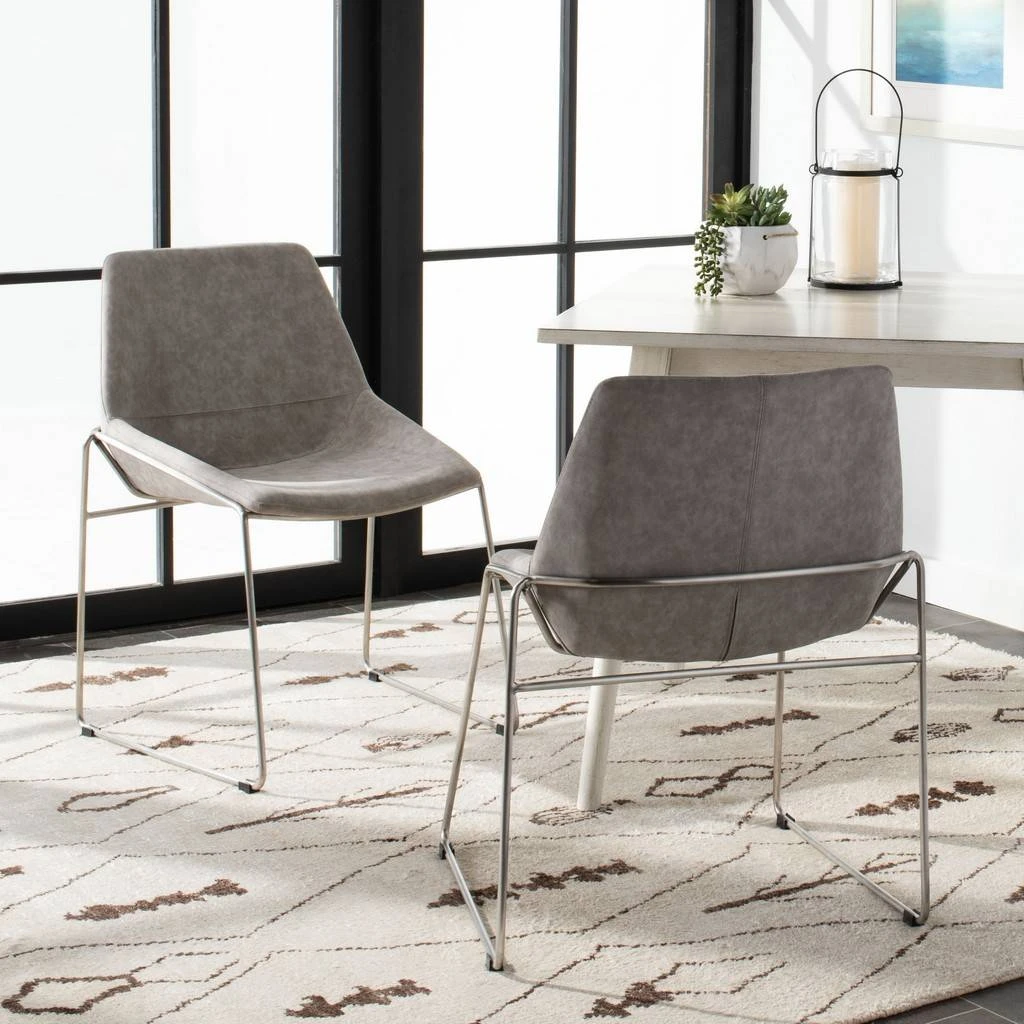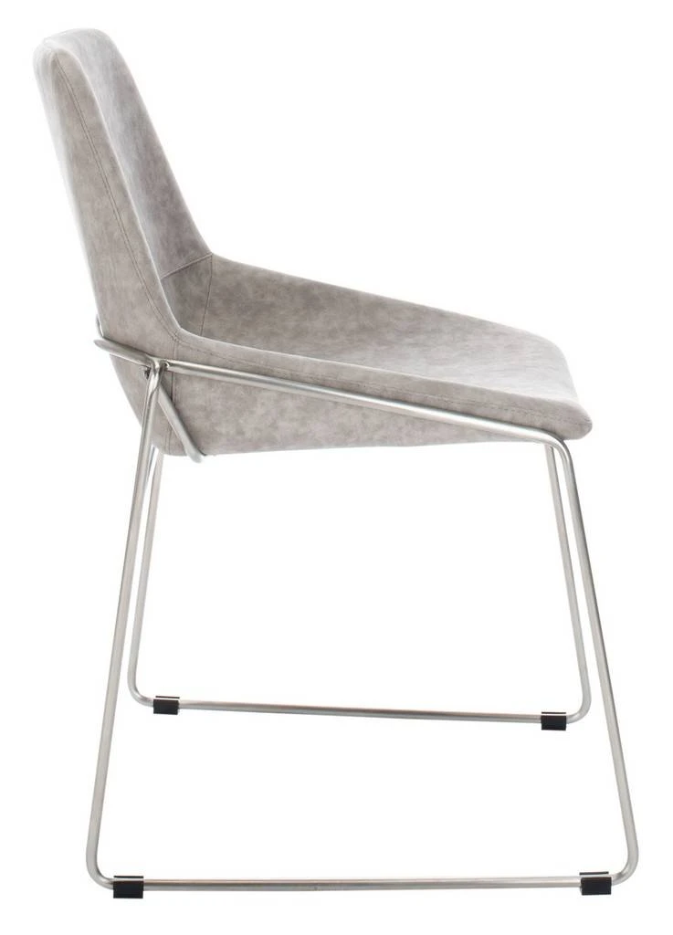 An investment in classic design, this deluxe Mid Century dining chair brings contemporary minimalist style to any dining room. Finely crafted with gentle curves, it features stone grey faux leather upholstery and slender metal legs. Sold in sets of two.