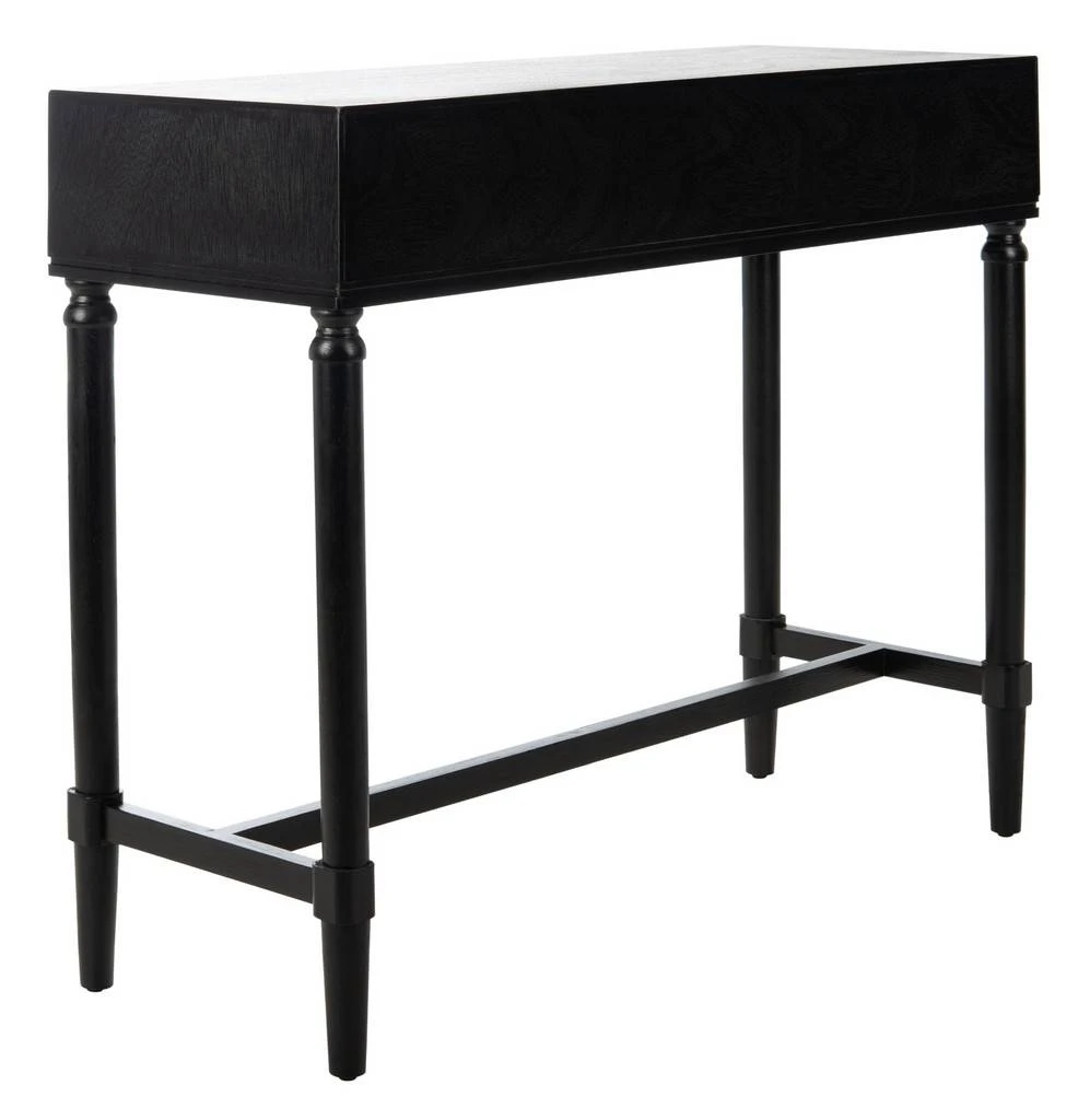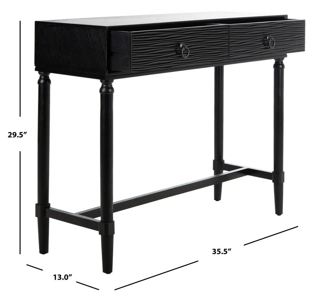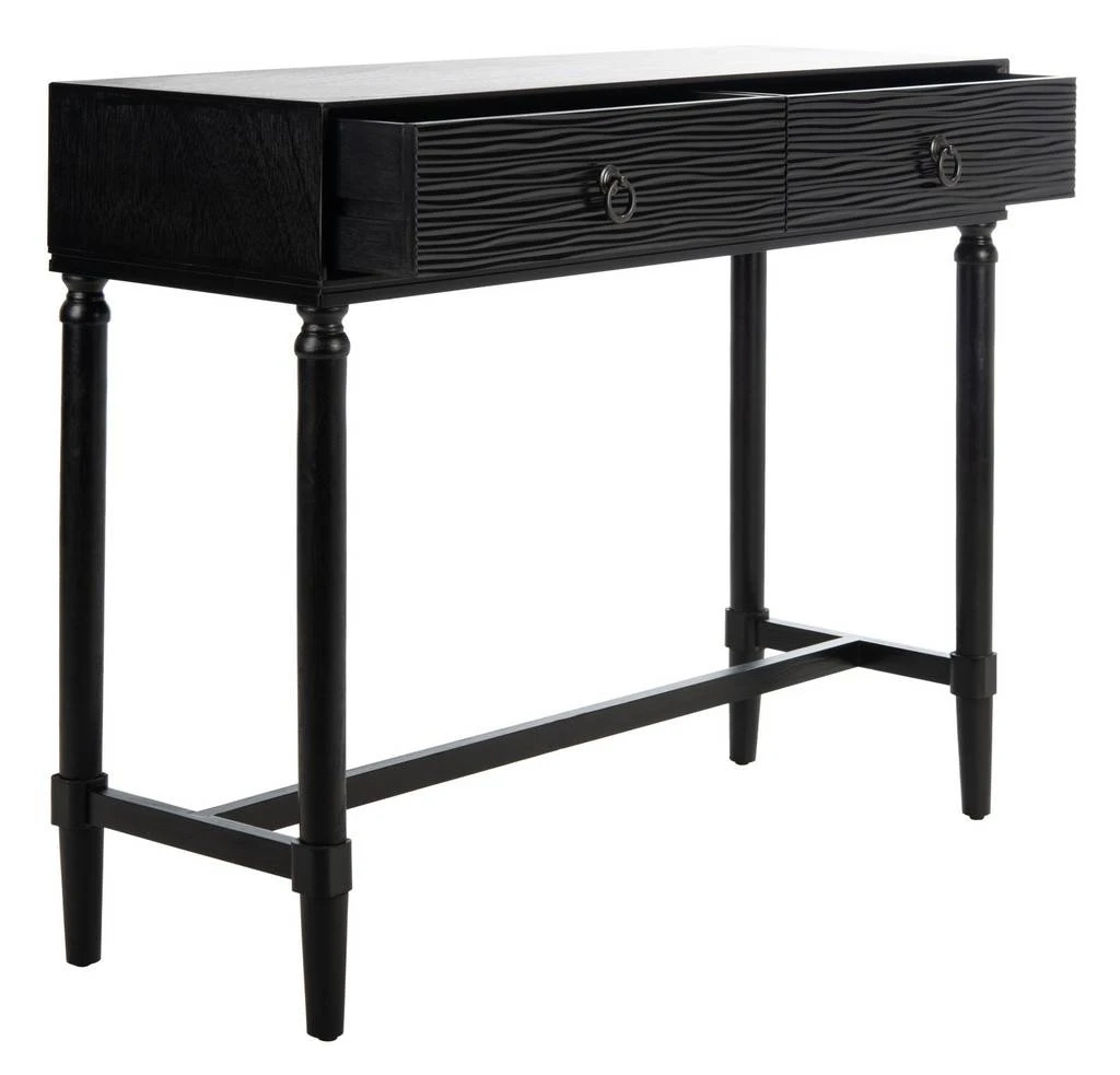 Rustic meets refined in this superb Aliyah 2 Drawer Console. Drawing inspiration from the timeless elegance of French country living along the Riviera, Aliyah’s finely carved accent details are given a fresh, modern update with a sleek black finish.
