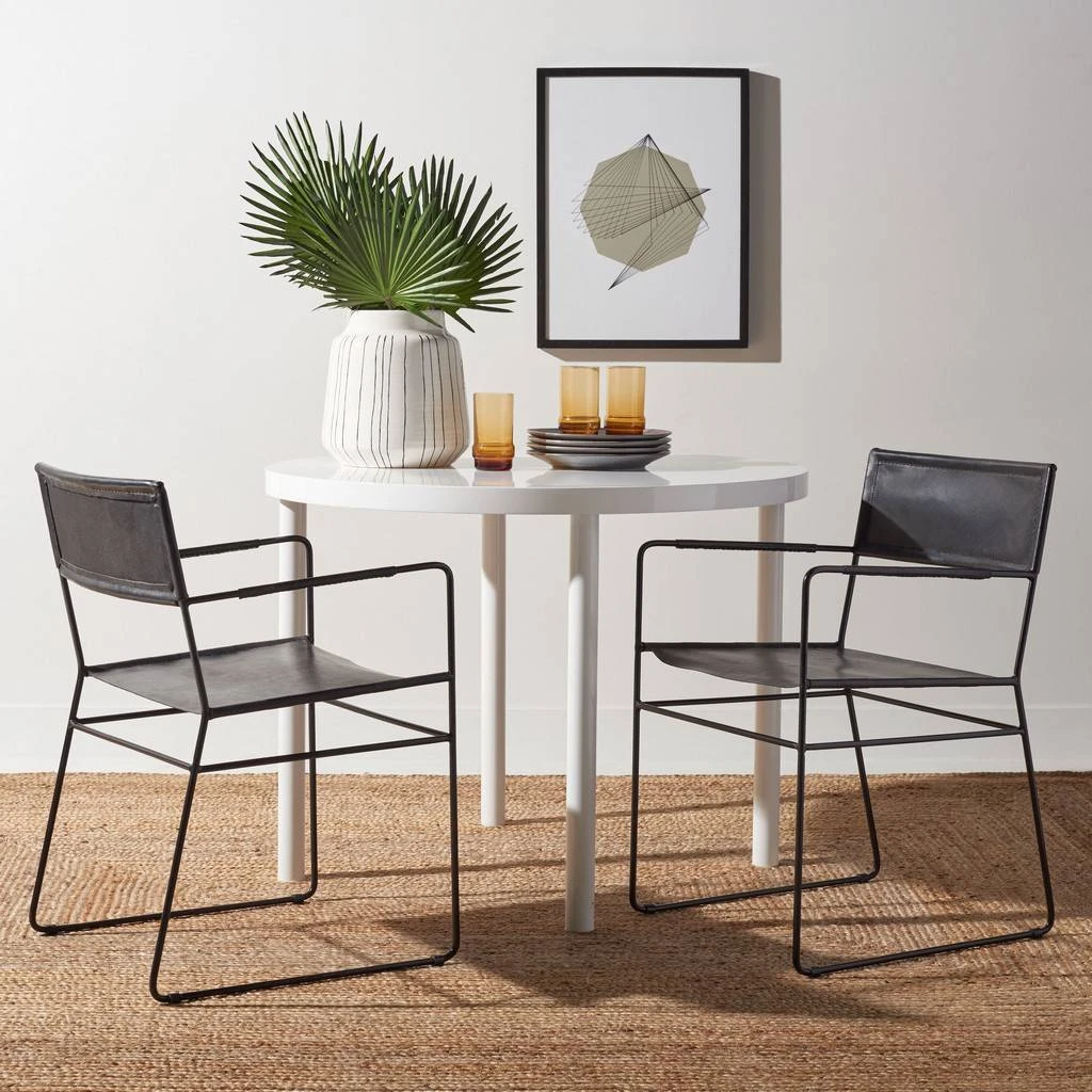 Taking inspiration from the Hollywood director’s chair, this Alyx Dining Chair ensures gathering around the table is always a celebrity-chic affair. Alyx’s open black metal frame gives any space marvelous decorative depth with its artistic negative space, and a matching black leather seat and back are absolutely luxurious. Sold in sets of two.