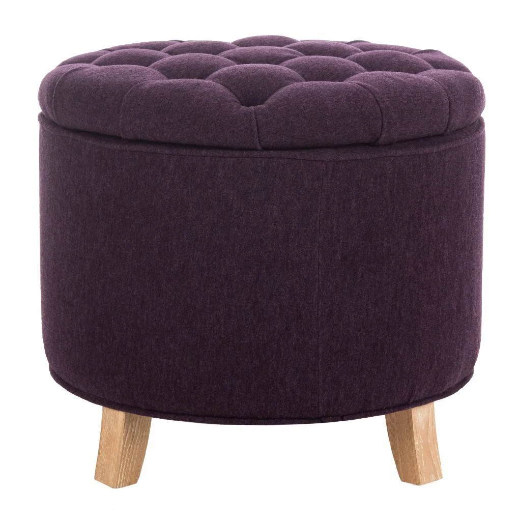 The quintessential storage ottoman, Amelia is transitional in design with button tufted removable quilted top and oak legs with pretty pickled oak finish. Practical and fashion right, plum upholstery is striking in , family room or master suite.