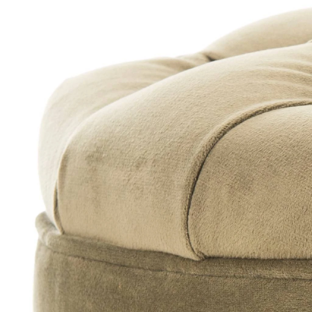 The quintessential storage ottoman, Amelia is transitional in design with button tufted removable quilted top and oak legs with rich espresso finish. Practical and fashion right, the Amelia tufted ottoman is upholstered in spruce cotton velvet, and striking in , family room or master suite.