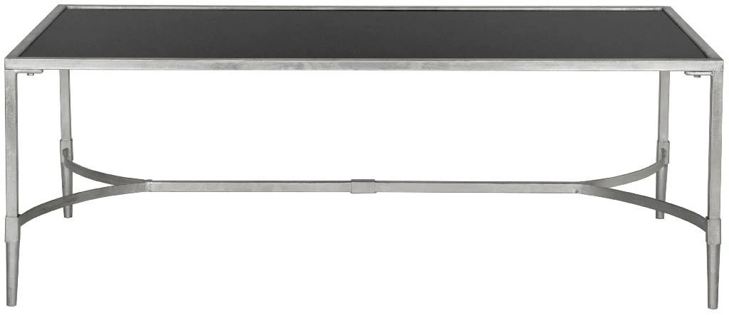 The epitome of sleek sophistication, the Antwan coffee table brings a designer look to the or entry hall. A wonderful example of metal artistry, this table is crafted of solid iron with silver and lacquer finish, and a tempered glass top.