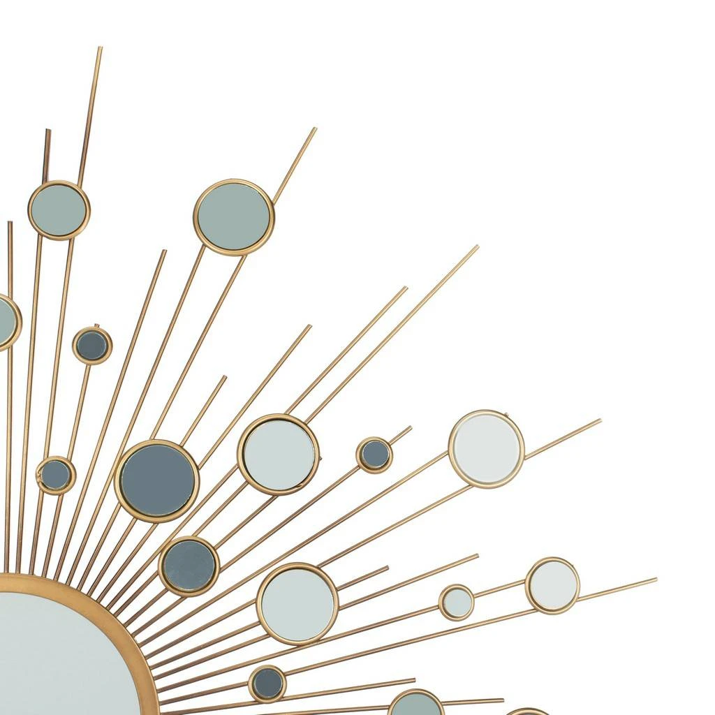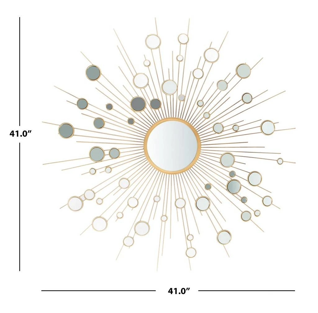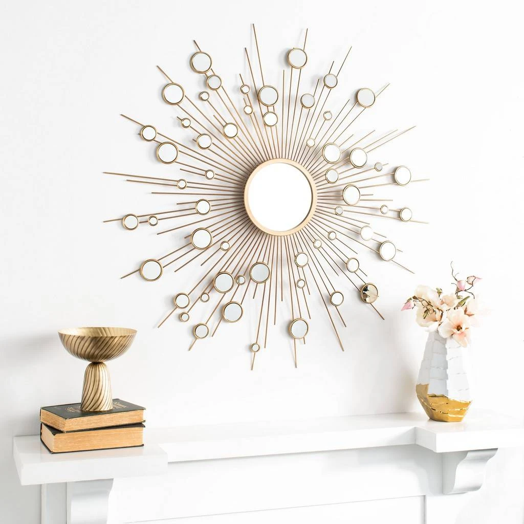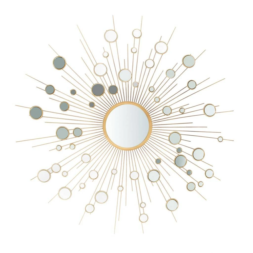 Bring a pop of mod style to the with this bold contemporary spin on the classic sunburst mirror. Finished in a deluxe gold hue, its glam design features outstretched arms with posh smaller mirrors that transform it into abstract wall art.