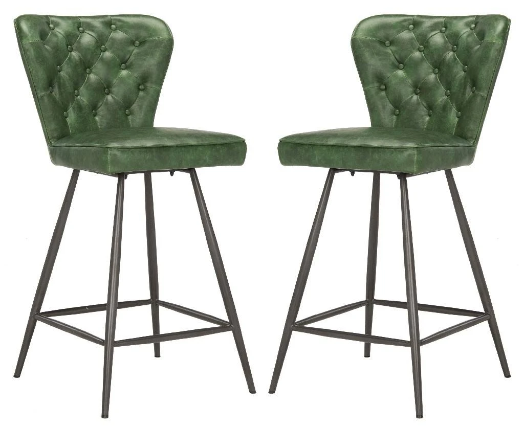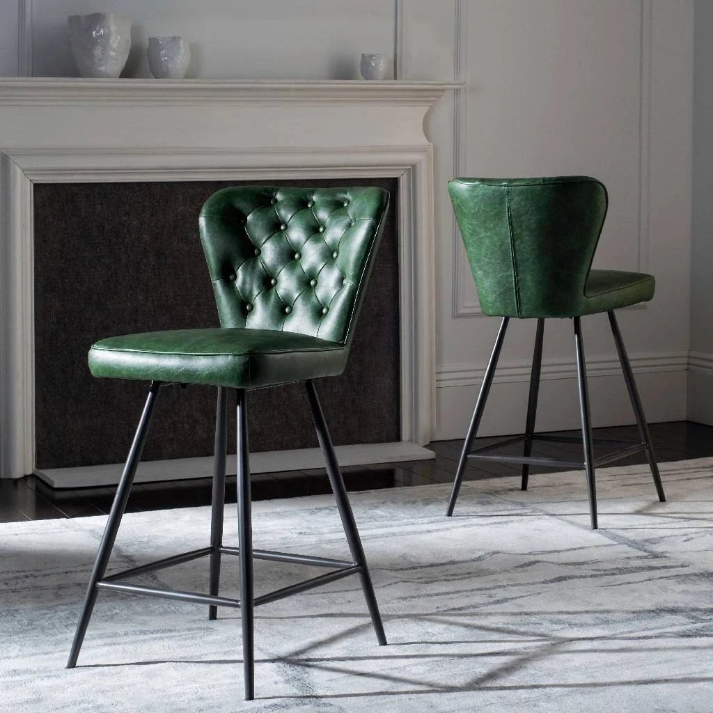 This upscale mid-century counter stool instantly updates any contemporary dining area with vintage curves and sleek metal legs. Designed for the modern jetsetter, its leather-style upholstery with tufted detail brings character and warmth to the table.