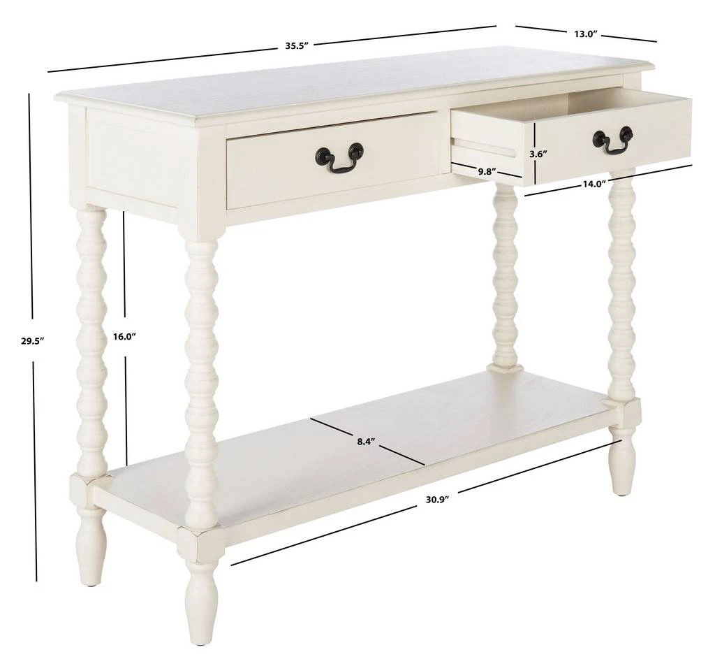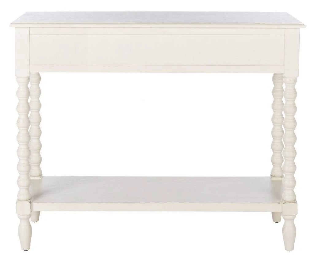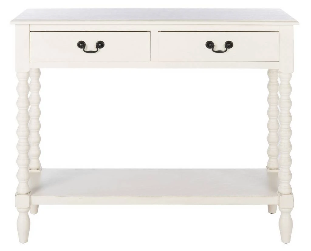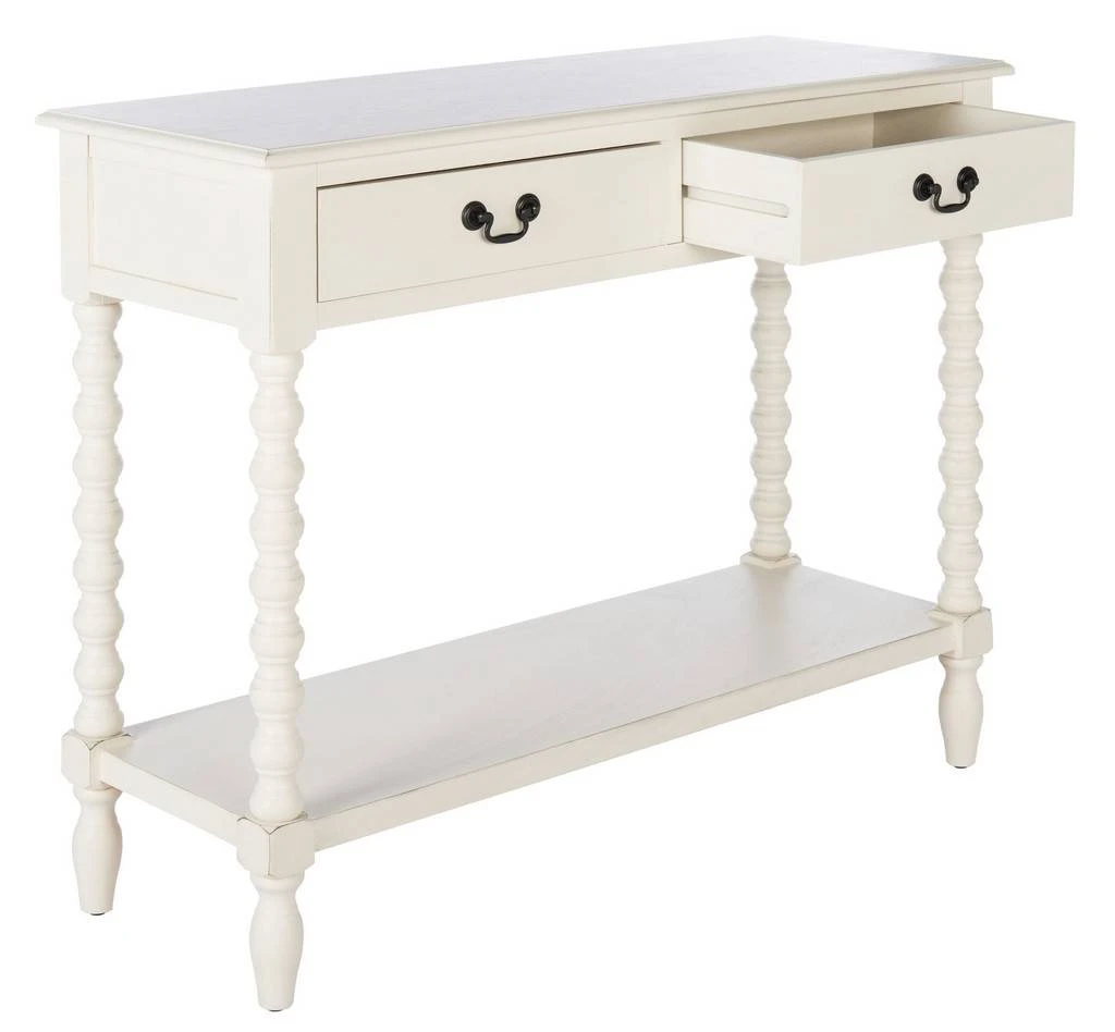 Bring farmhouse charm to any classic contemporary décor with this Athena Console Table. Athena’s modernized ball turned legs are beautifully highlighted by its distressed white finish, while an open bottom shelf and twin slim drawers provide ample storage and display space.