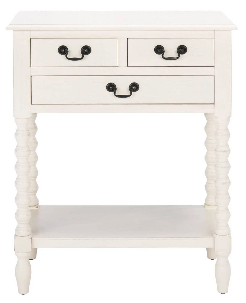 Bring farmhouse charm to any classic contemporary décor with this Athena Console Table. Athena’s modernized ball turned legs are beautifully highlighted by its distressed white finish, while an open bottom shelf and three slim drawers provide ample storage and display space.