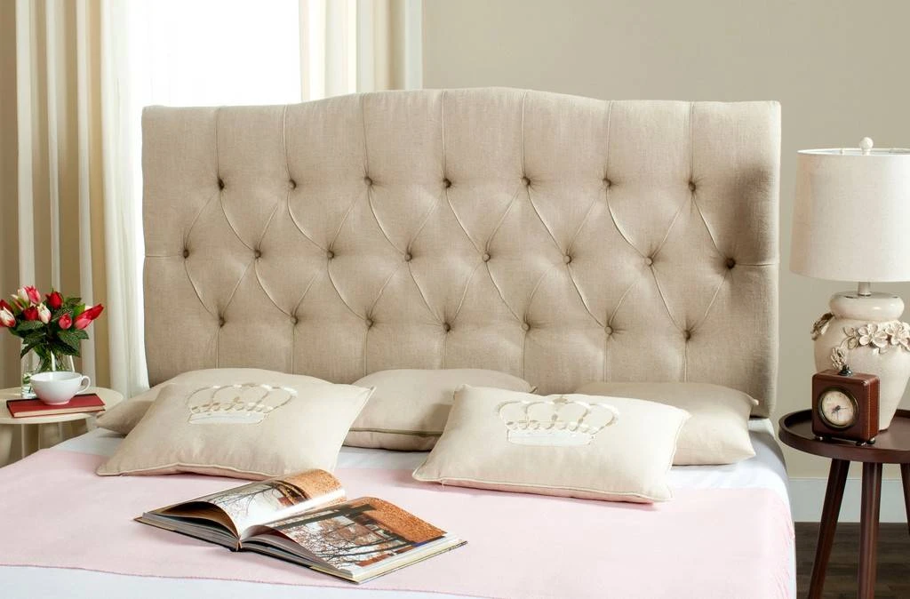 Tucked away in Hampshire’s glorious countryside is the finely appointed British bed and breakfast that inspired this tufted linen headboard. Finished in a serene hemp hue, its natural texture and style create a soothing and refined oasis in any boudoir.