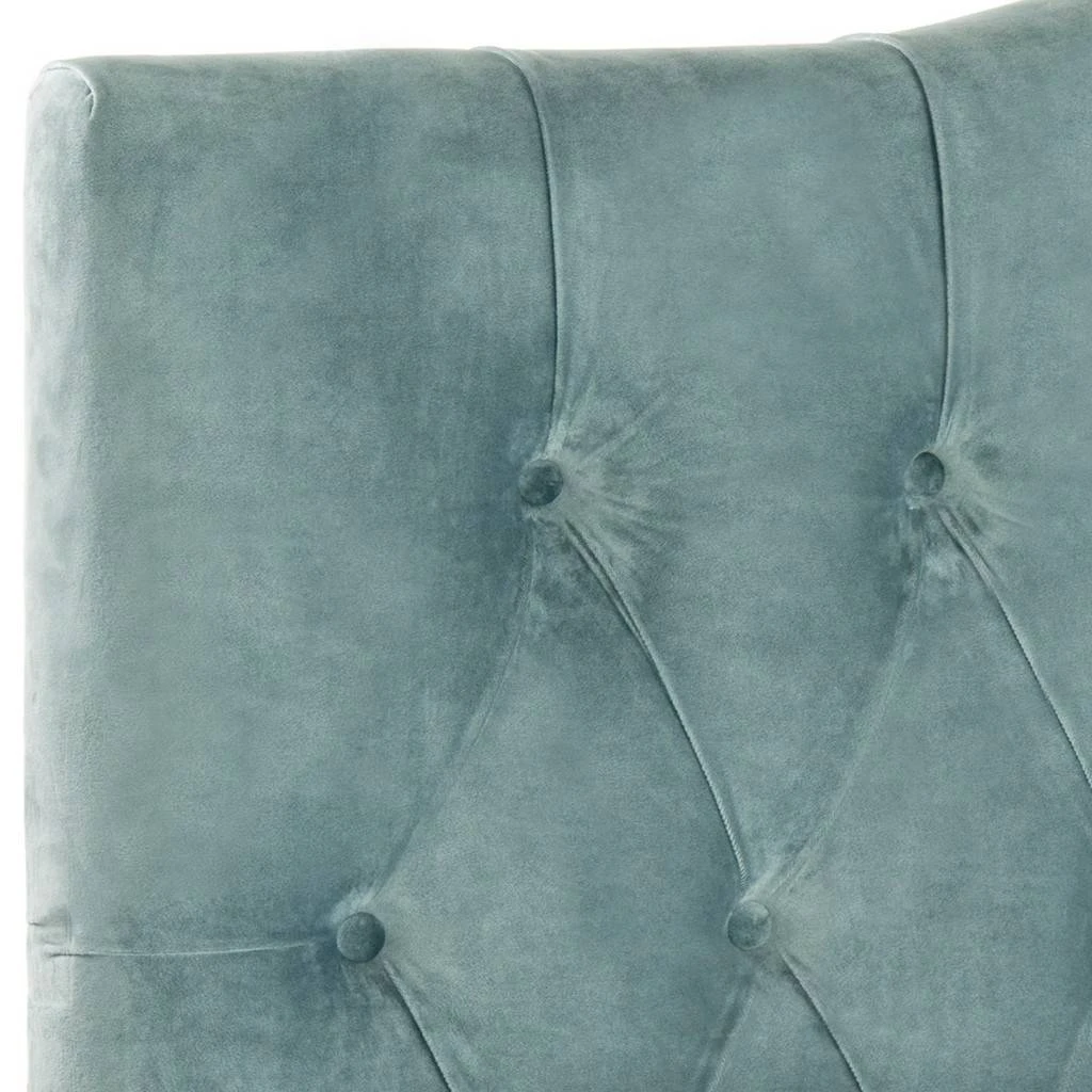 Dress up a guest room or master suite with the deeply tufted Axel headboard. With posh button tufted upholstery in lush Wedgwood blue velvet, this comfortably padded, gently curved headboard evokes images of 1930s Hollywood glam.
