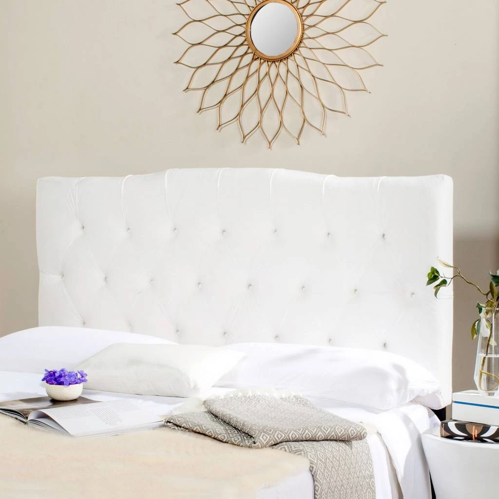 Dress up a guest room or master suite with the deeply tufted Axel headboard. With posh button tufted upholstery in lush white velvet, this comfortably padded, gently curved headboard evokes images of 1930s Hollywood glam.