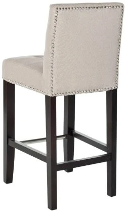 Thompson 23.9″ Linen Counter Stool W/ Silver Nailheads In Taupe/Espresso – Safavieh MCR4511B