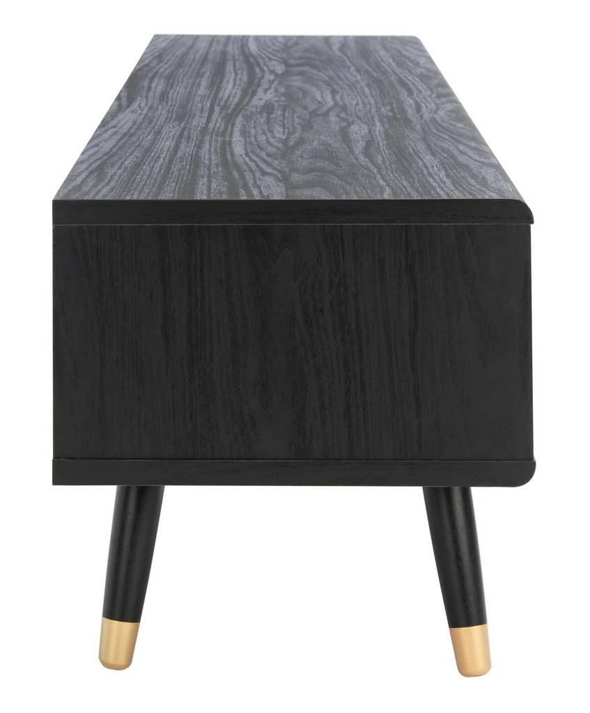 A study in design fusion, this Beatrix 1 Shelf Media Stand combines retro chic charm with contemporary class. Beatrix’s black wood frame provides a striking, artistic contrast to its two oak toned drawers and gold finished accents, making Beatrix versatile and stylish for any living space.