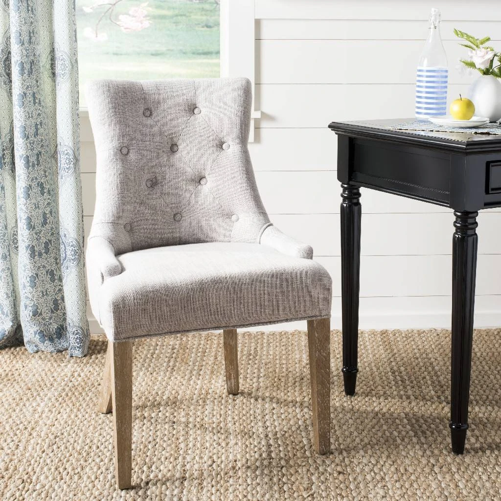 The Becca chair features a dressy elegance without being stuffy, so it’s a perfect companion for country homes, city apartments or formal manors. Becca has chic grey upholstery, a white washed finish on birch wood legs, and features high back and sloped arms. To prevent overall soiling, frequent vacuuming or light brushing is recommended. Cushions and pillows should be turned on a weekly basis. Down-filled cushions should be brushed rather than vacuumed. Spot clean, using a mild water-free solvent or dry cleaning product. Only a professional cleaner should undertake a complete overall cleaning. The use of steam or water-based cleaners may cause excessive shrinking or staining.