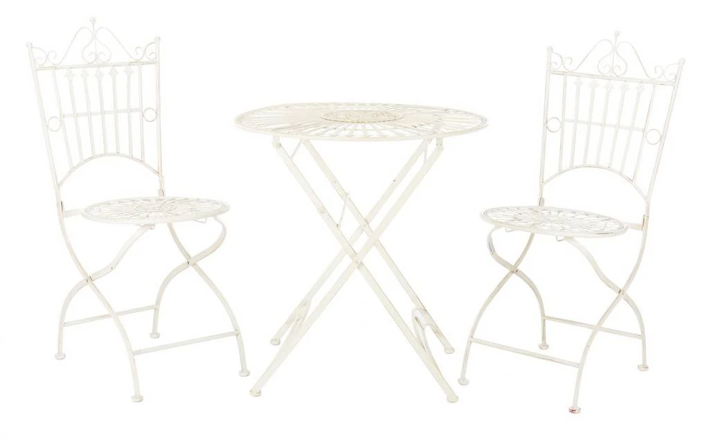 Whether it’s afternoon tea or a moonlight soiree, it’s easy to dine like royalty with this Belen Bistro Set. Inspired by master artisan ironwork, Belen’s table and two matching chairs are given an elegant Victorian touch with antique white scrolls and flourishes.