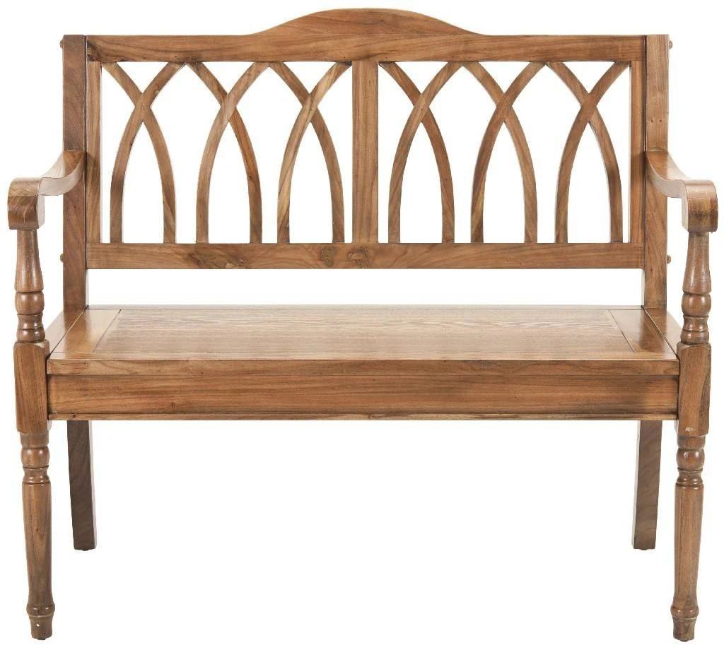 The Benjamin bench takes a classic garden form and transports it indoors. Elegant finials on the sides under the arms, a back motif inspired by gothic architecture transform the oak finished pine Benjamin bench into a striking statement appropriate for entryways, and .