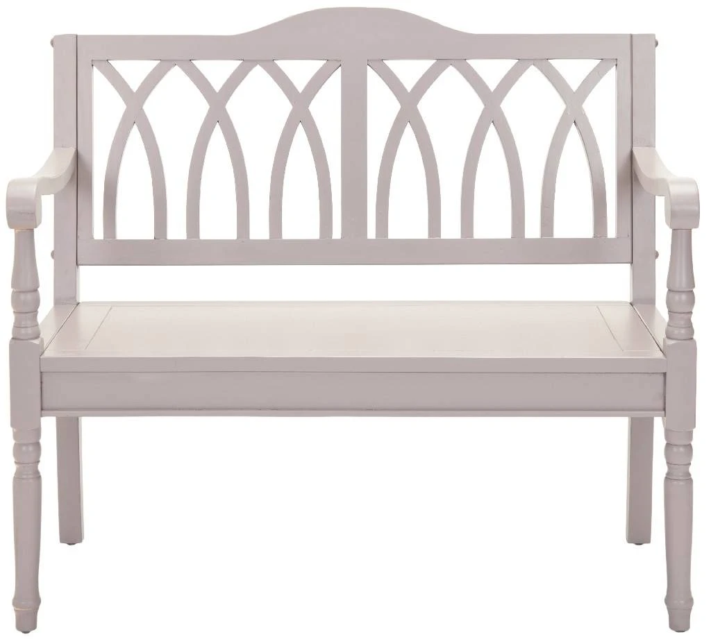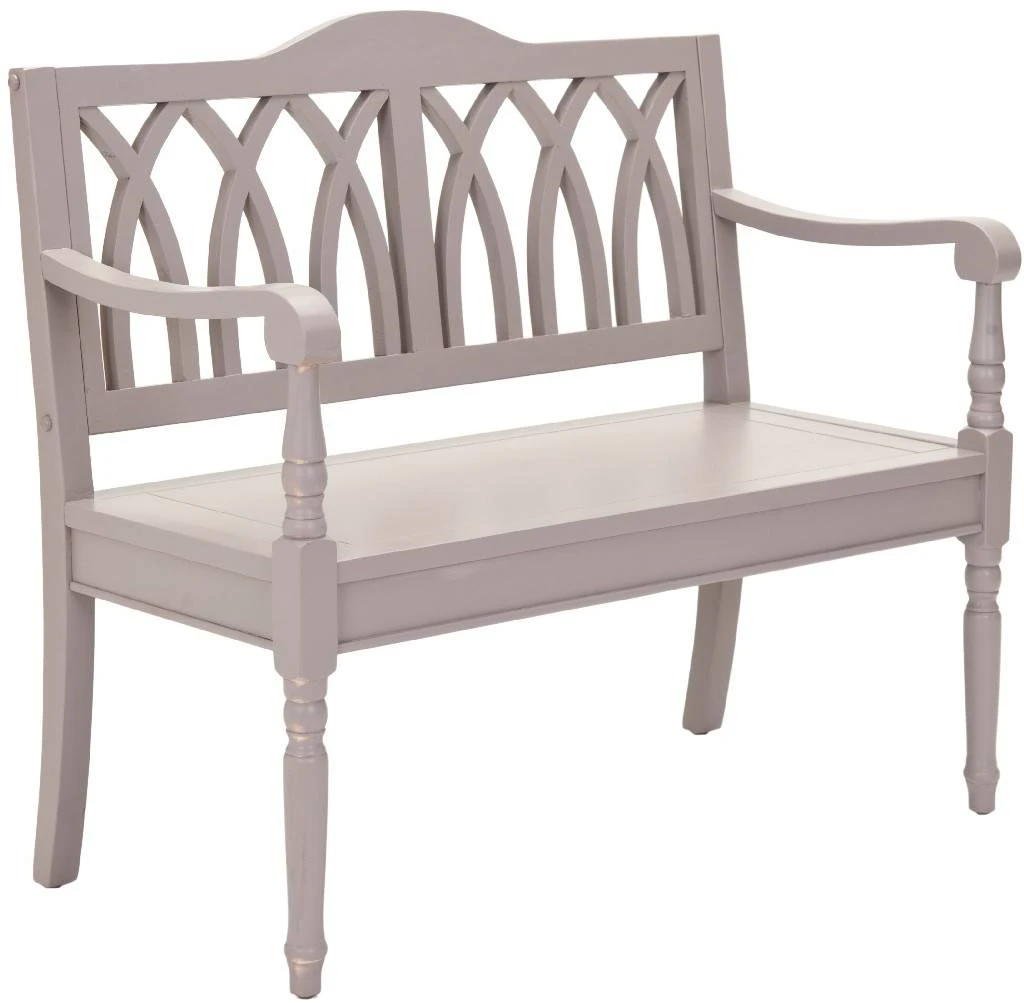 The Benjamin bench takes a classic garden form and transports it indoors. Elegant finials on the sides under the arms, a back motif inspired by gothic architecture transform the grey finished pine Benjamin bench into a striking statement appropriate for entryways, and .