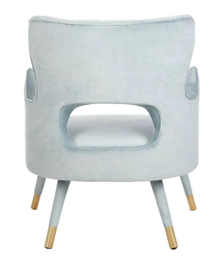 A modern vision of classic luxury, this contemporary wingback accent chair was designed for the stylish . Its rich slate blue velvet upholstery features plush channeling and a cut-out back. A radiant gold finish illuminates its black capped legs.
