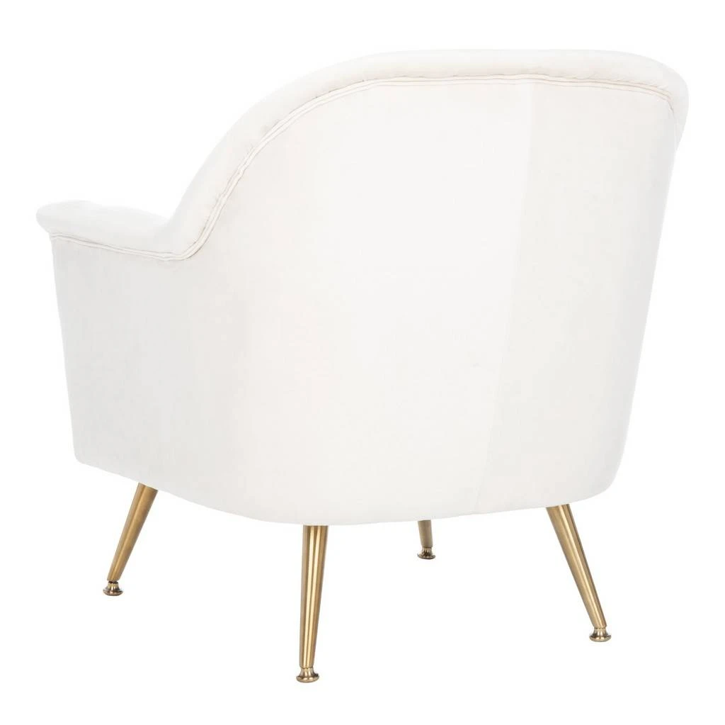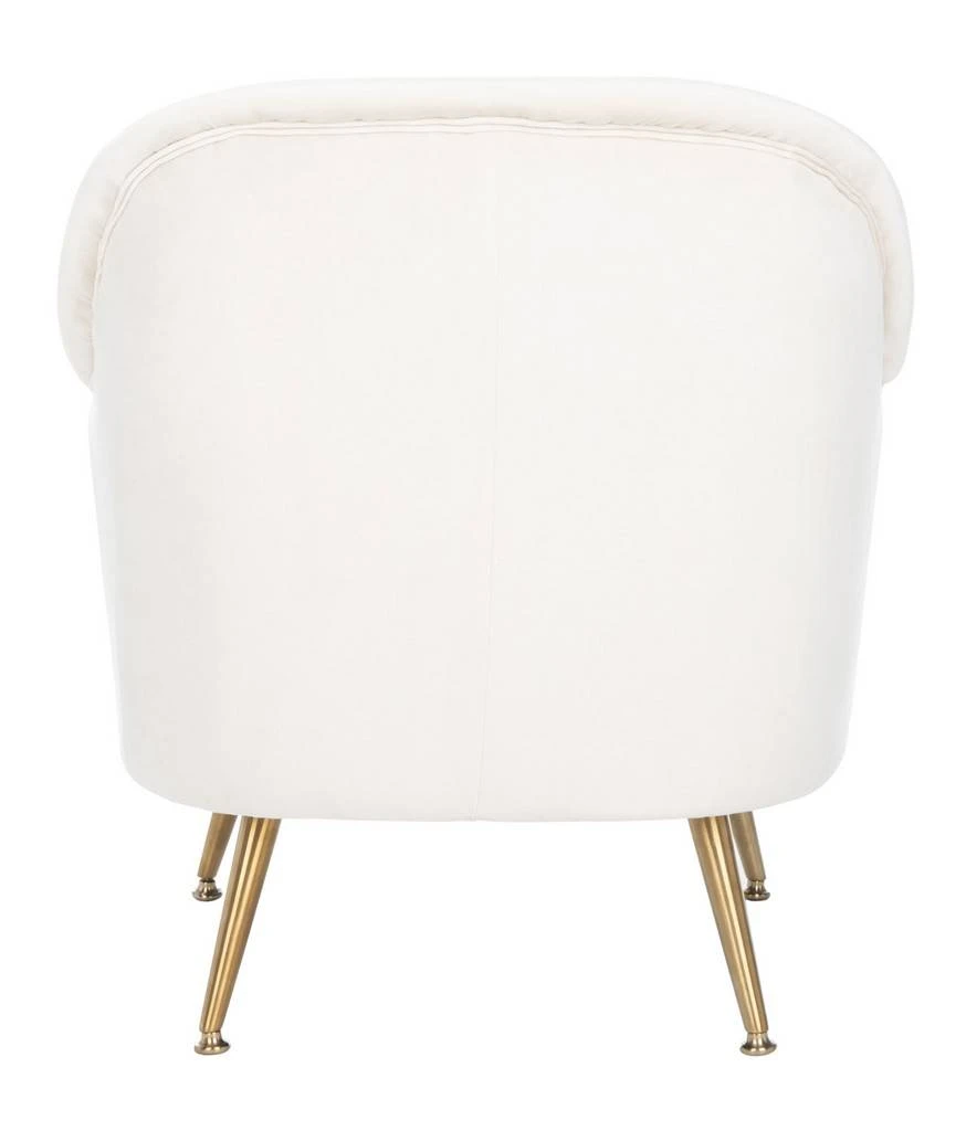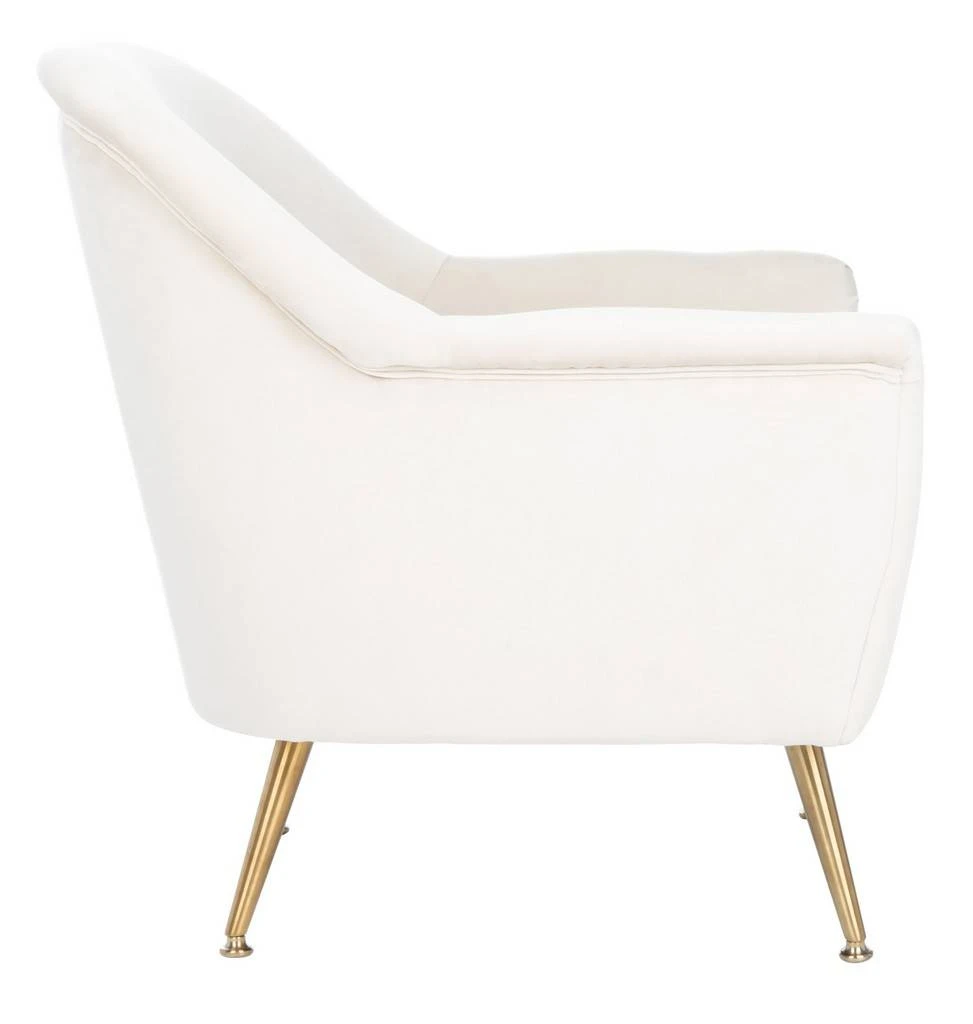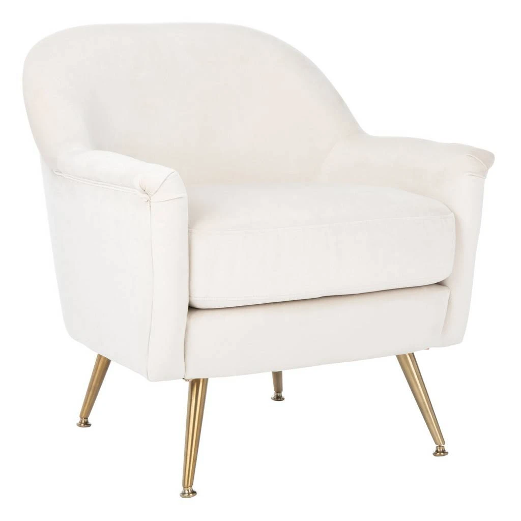 Update any with the fresh retro flair of this Brienne Mid Century Arm Chair. Brienne’s plush ivory velvet is paired with vintage style brass legs to create a luxuriously glam retreat for relaxing with an after work cocktail.