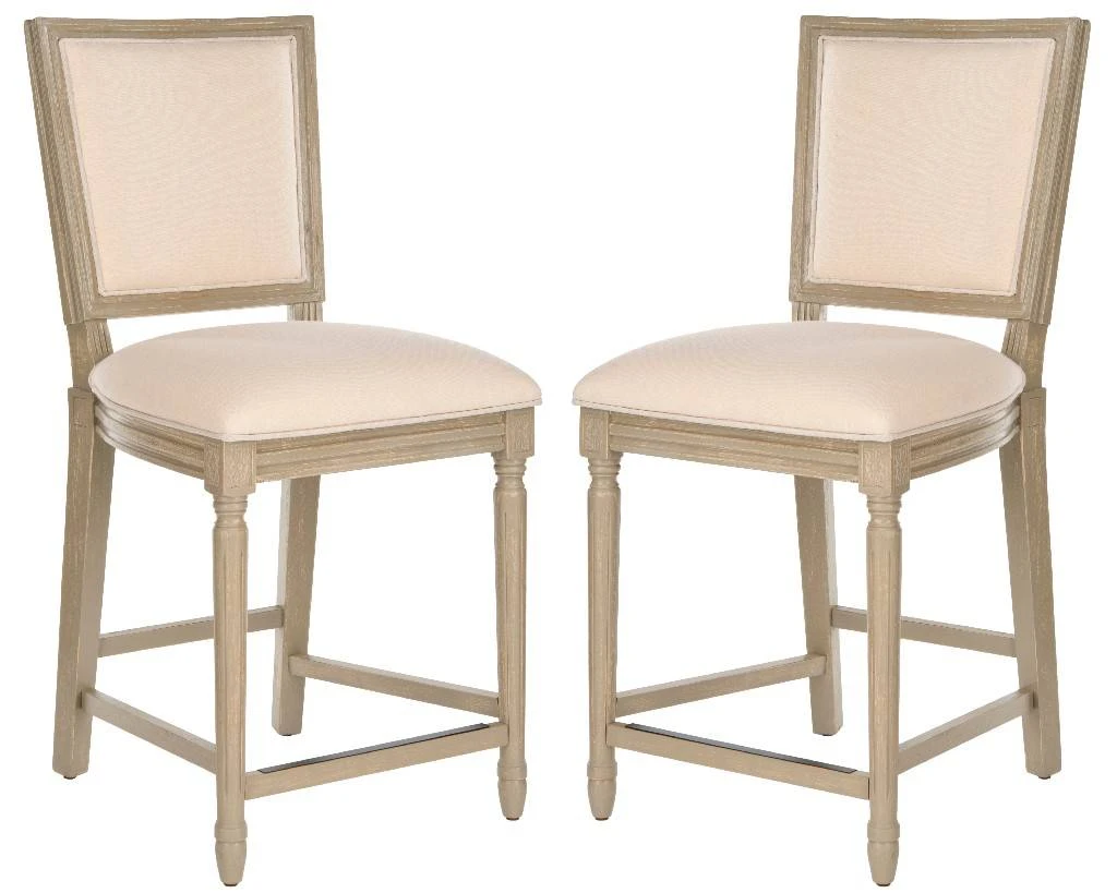 Bring refined living to any dining area or island with this versatile rectangle counter stool. A modern classic, it offers inimitable French joie de vivre with its striking light beige upholstery and elegant rustic grey finish with deluxe carved detail.