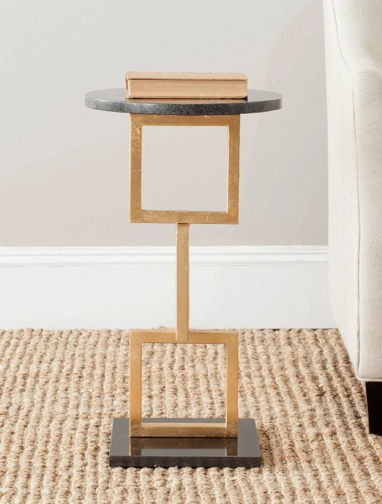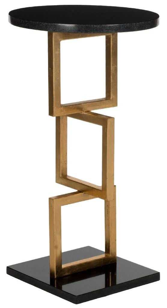 Statuesque and stylish, the Cassidy Accent Table pays homage to modern sculpture. Crafted with a gold-leafed iron base and black marble tabletop, it is a perfect addition to transitional and modern rooms.