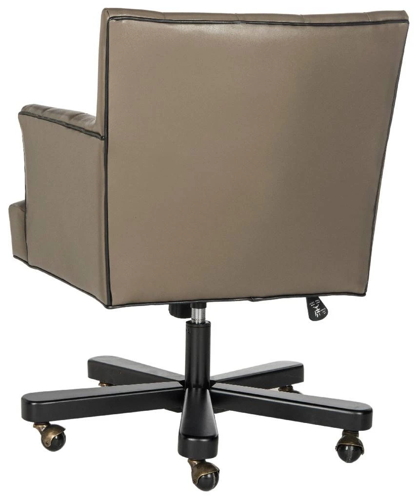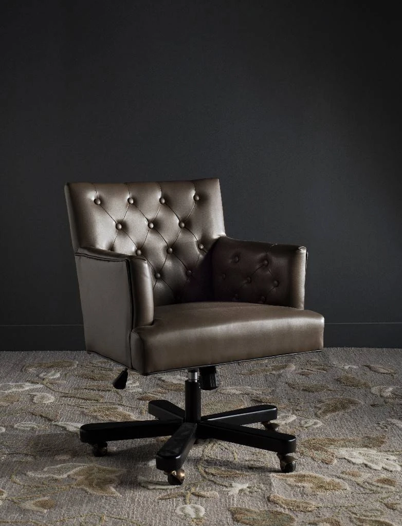 Inspired by British library chairs, this biscuit tufted leather desk chair in clay puts a decidedly modern spin on a timeless classic. Sleek lines, black piping, and black metal base on casters prove that form and function make the ideal office romance.