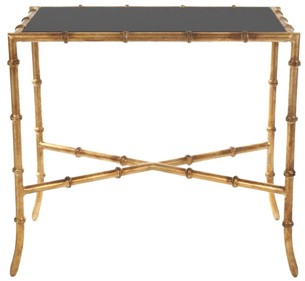 Recreating the classic elegance of willowy bamboo, the glass-topped Chandler accent table is striking in both its workmanship and simplicity of line. A crisscross base and graceful curved legs are sculpted of iron and finished in the warm matte gold patina of burnished brass.