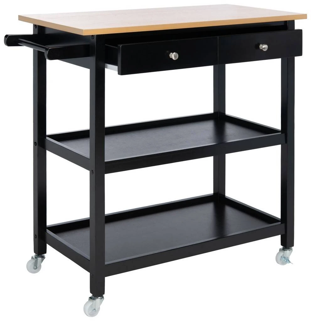 Often used as a miniature portable kitchen island, this Cohyn Kitchen Cart is a must-have for today’s stylishly practical eating areas. Cohyn’s two shelves and two drawers are ideal for produce, spices, or cutlery, and its chic pairing of matte black and natural wood finishes are decisively dynamic.