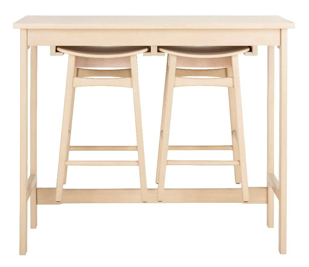 Take any dining experience to new heights with this smart and stylish contemporary pub set. Its brilliant design features a clever built-in rack that stores its complimentary stools under the table. Its clean lines make it a perfect fit in any décor.