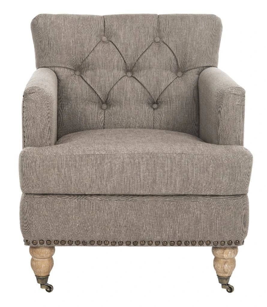 Evoking classic elegance, the Colin club chair in taupe linen upholstery is a timeless design that complements traditional and transitional furnishings. Inviting in the and cozy in the , Colin is crafted with plush seat cushion, and designer details from button tufting to brass nail head trim and birch wood legs in white wash finish. To prevent overall soiling, frequent vacuuming or light brushing is recommended. Cushions and pillows should be turned on a weekly basis. Down-filled cushions should be brushed rather than vacuumed. Spot clean, using a mild water-free solvent or dry cleaning product. Only a professional cleaner should undertake a complete overall cleaning. The use of steam or water-based cleaners may cause excessive shrinking or staining.