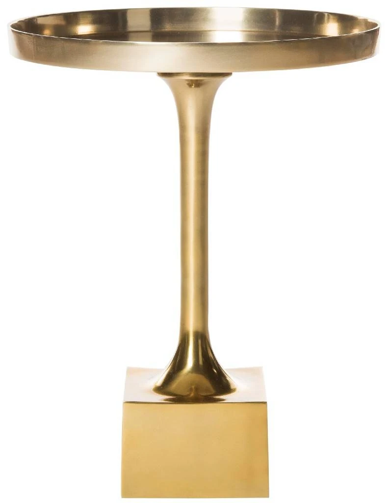 Inspired by the sculpture of Romanian artist Constantin Brâncuși, this round side table is a contemporary masterpiece. Its luxurious antique brass finish illuminates its pairing of clean lines and chic curves. Designers love the tray-style top detail.
