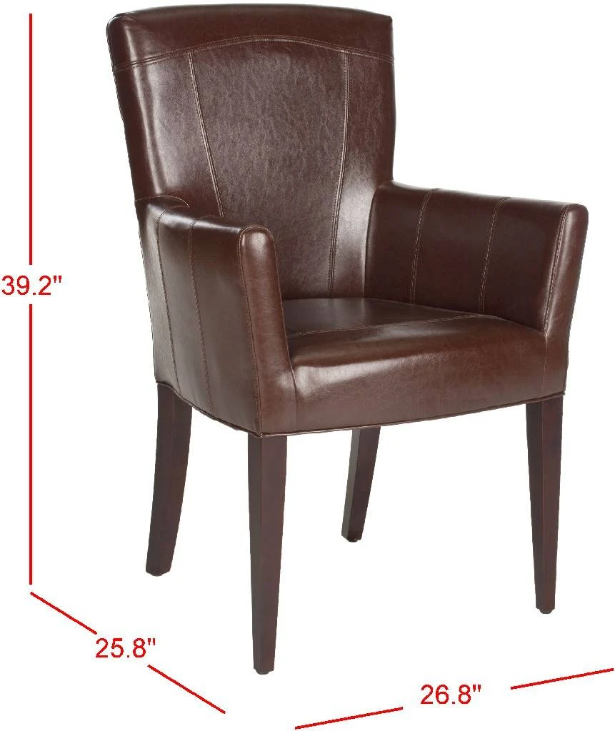 Dapper and delightful, the Dale Armchair brings a soft, tailored touch to any room with brown bicast leather upholstery and birch wood legs with cherry mahogany finish. Whether it’s an intimate dining room, a set for the study or a place for guests to have a cocktail in the , any room becomes an instant scene of modern luxury. Although Leather is one of the most durable upholstery materials, proper care is vital to maintain its appearance and performance. Dust weekly using a soft, clean cloth slightly dampened with distilled water. Blot spills immediately with a soft, clean absorbent dry cloth.