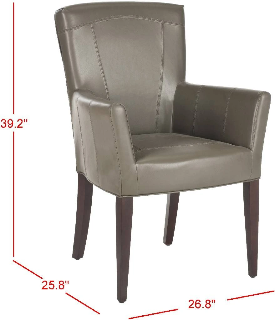 Dapper and delightful, the Dale Armchair brings a soft, tailored touch to any room with clay bicast leather upholstery and birch wood legs with cherry mahogany finish. Whether it’s an intimate dining room, a set for the study or a place for guests to have a cocktail in the , any room becomes an instant scene of modern luxury. Although Leather is one of the most durable upholstery materials, proper care is vital to maintain its appearance and performance. Dust weekly using a soft, clean cloth slightly dampened with distilled water. Blot spills immediately with a soft, clean absorbent dry cloth.