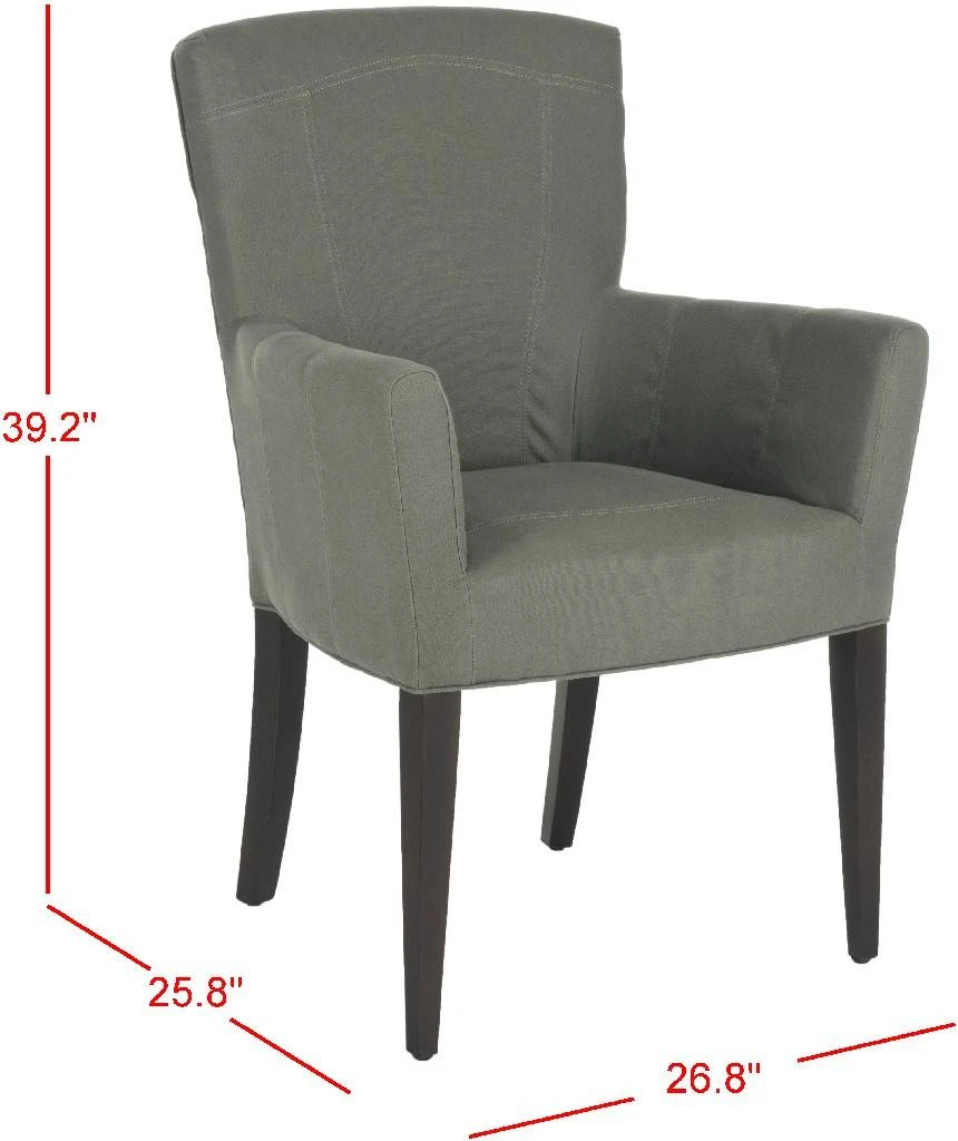 Dapper and delightful, the Dale Armchair brings a soft, tailored touch to any room with taupe linen upholstery and birch wood legs with espresso finish. Whether it’s an intimate dining room, a set for the study or a place for guests to have a cocktail in the , any room becomes an instant scene of modern luxury. To prevent overall soiling, frequent vacuuming or light brushing is recommended. Cushions and pillows should be turned on a weekly basis. Down-filled cushions should be brushed rather than vacuumed. Spot clean, using a mild water-free solvent or dry cleaning product. Only a professional cleaner should undertake a complete overall cleaning. The use of steam or water-based cleaners may cause excessive shrinking or staining.
