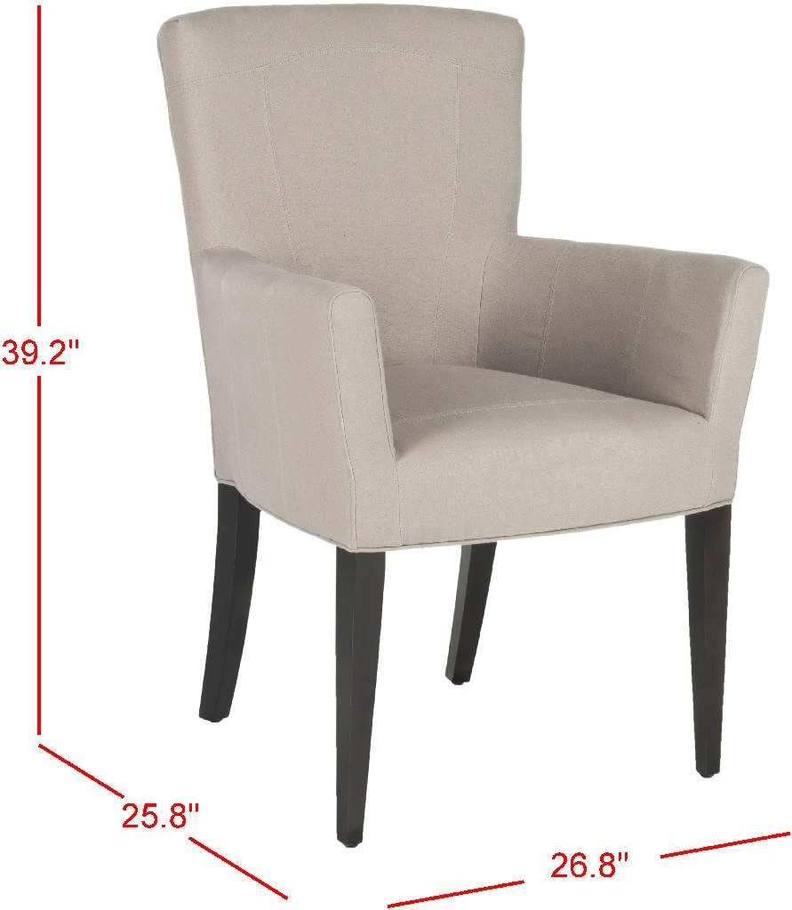 Dapper and delightful, the Dale Armchair brings a soft, tailored touch to any room with taupe linen upholstery and birch wood legs with espresso finish. Whether it’s an intimate dining room, a set for the study or a place for guests to have a cocktail in the , any room becomes an instant scene of modern luxury. To prevent overall soiling, frequent vacuuming or light brushing is recommended. Cushions and pillows should be turned on a weekly basis. Down-filled cushions should be brushed rather than vacuumed. Spot clean, using a mild water-free solvent or dry cleaning product. Only a professional cleaner should undertake a complete overall cleaning. The use of steam or water-based cleaners may cause excessive shrinking or staining.