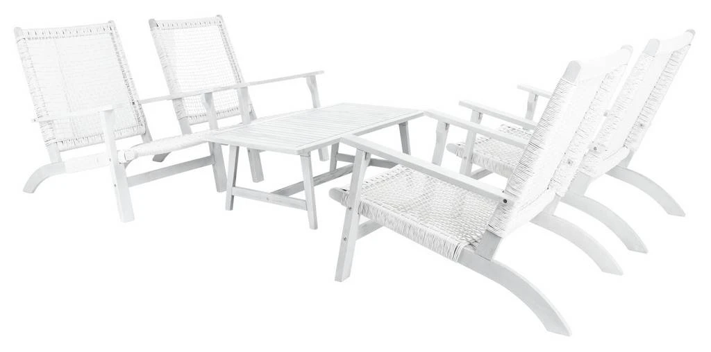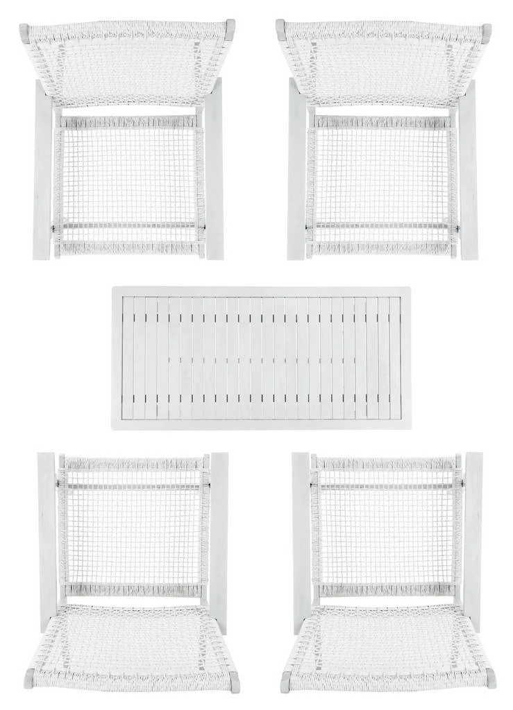Tropical resort style comes to your porch or patio with this coastal Deven 5 Piece Coffee Set. Lounge with family and friends in the warm breeze with Deven’s four modern grey acacia chairs while enjoying your morning beverages. Designers love its grey woven rattan. Includes rectangular coffee table.