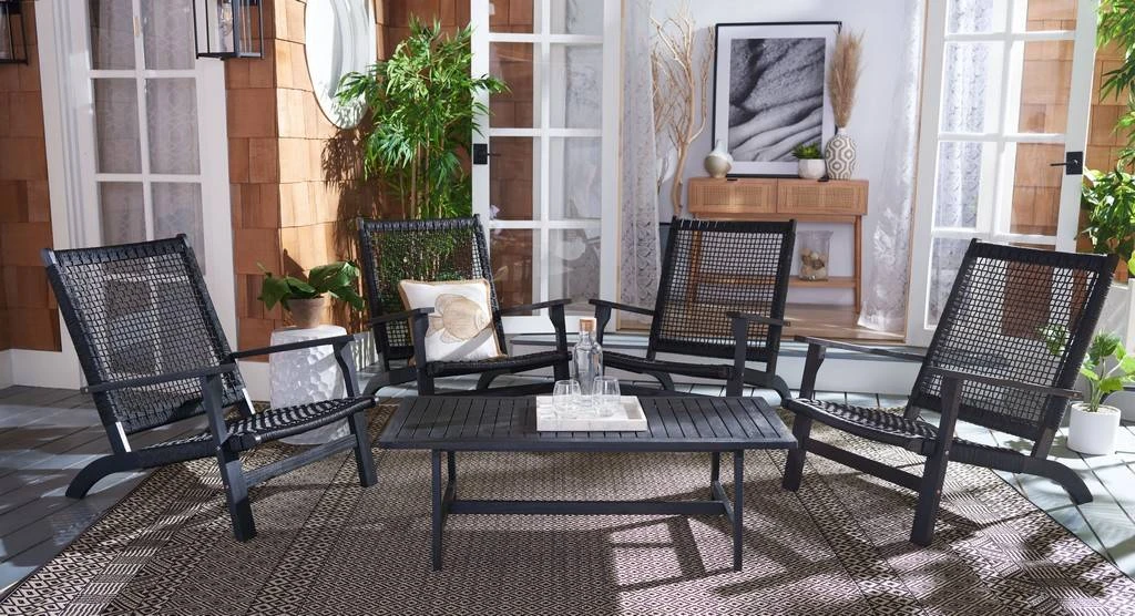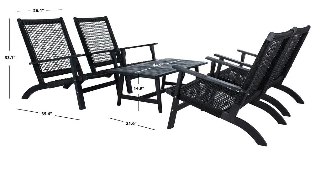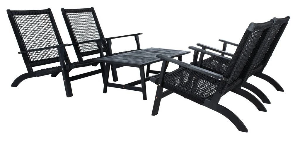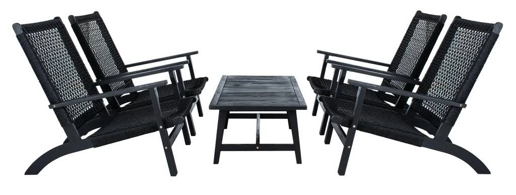 Tropical resort style comes to your porch or patio with this coastal Deven 5 Piece Coffee Set. Lounge with family and friends in the warm breeze with Deven’s four modern black acacia chairs while enjoying your morning beverages. Designers love its grey woven rattan. Includes rectangular coffee table.