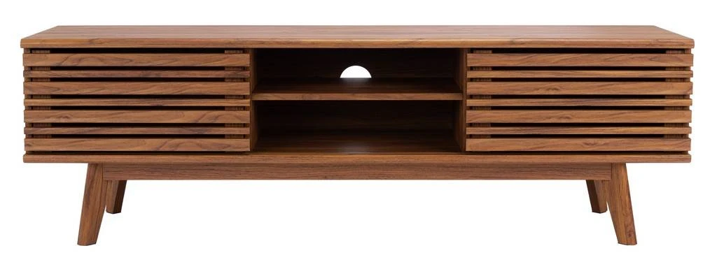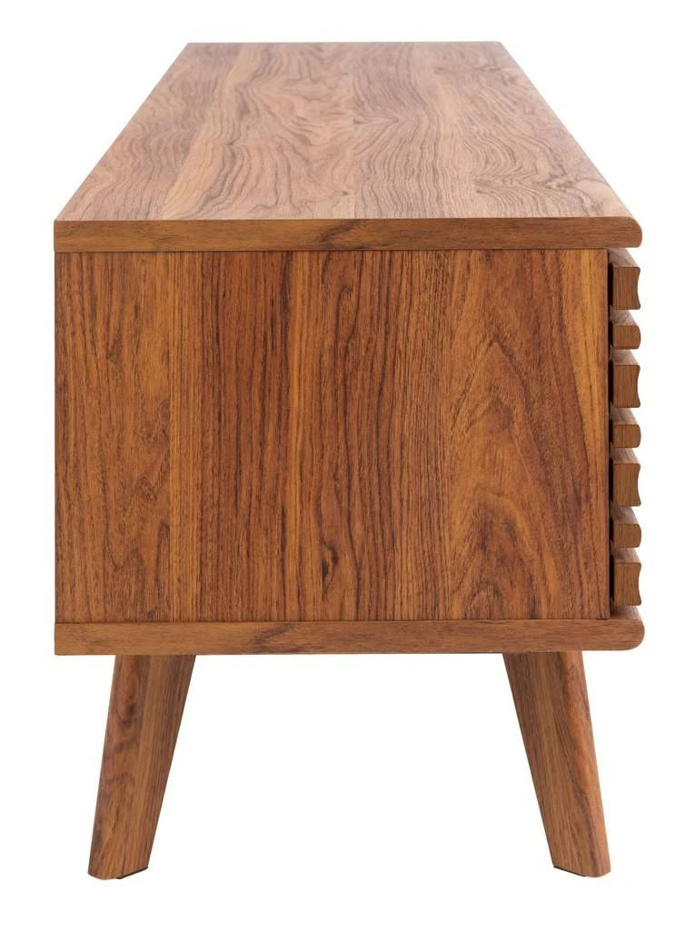 Retro charm meets contemporary chic in this Esma Media Stand. Designed to perfectly blend with any décor, Esma’s rich walnut finish beautifully highlights its two slatted doors and splayed wooden legs. Two shelves provide easy access storage for devices, while a clever back cut out perfectly hides cables or wires.