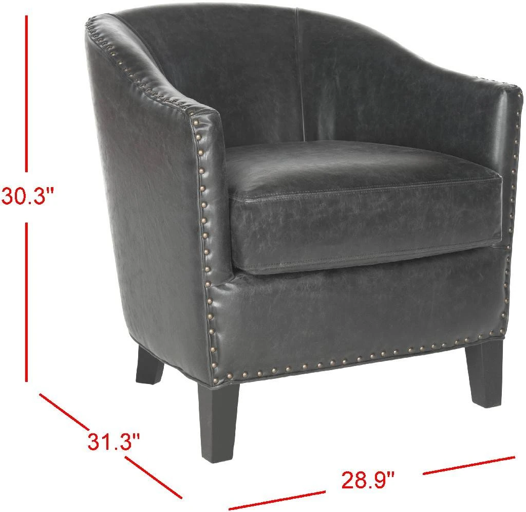 A transitional update of the classic tub chair, the antique black Evander club chair is brimming with sophistication—and curves. Artfully upholstered in PU leather, this comfortable chair is detailed with brass nailhead trim and black birch legs. The Evander chair is perfect in a , family room, home office or masculine suite. To prevent overall soiling, frequent vacuuming or light brushing is recommended. Cushions and pillows should be turned on a weekly basis. Down-filled cushions should be brushed rather than vacuumed. Spot clean, using a mild water-free solvent or dry cleaning product. Only a professional cleaner should undertake a complete overall cleaning. The use of steam or water-based cleaners may cause excessive shrinking or staining.