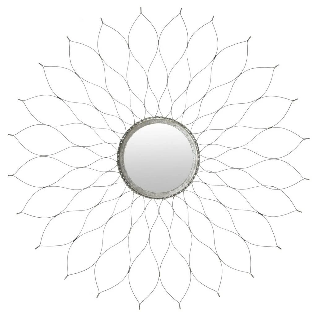 Lightly wrought iron petals gently spread out around a mirrored disc in the Flower Mirror. The delicate styling give this wallflower an airy allure.