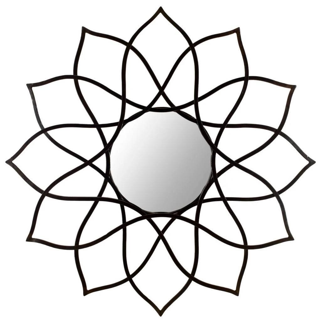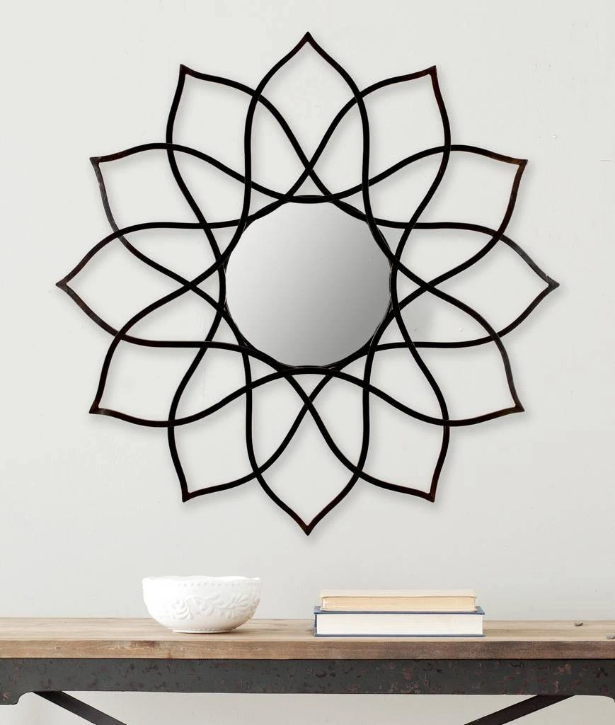 Add modern flower power to any room. The coffee and bronze finish on this contemporary mirror highlights the organic geometry of its artfully hand wrought iron frame.
