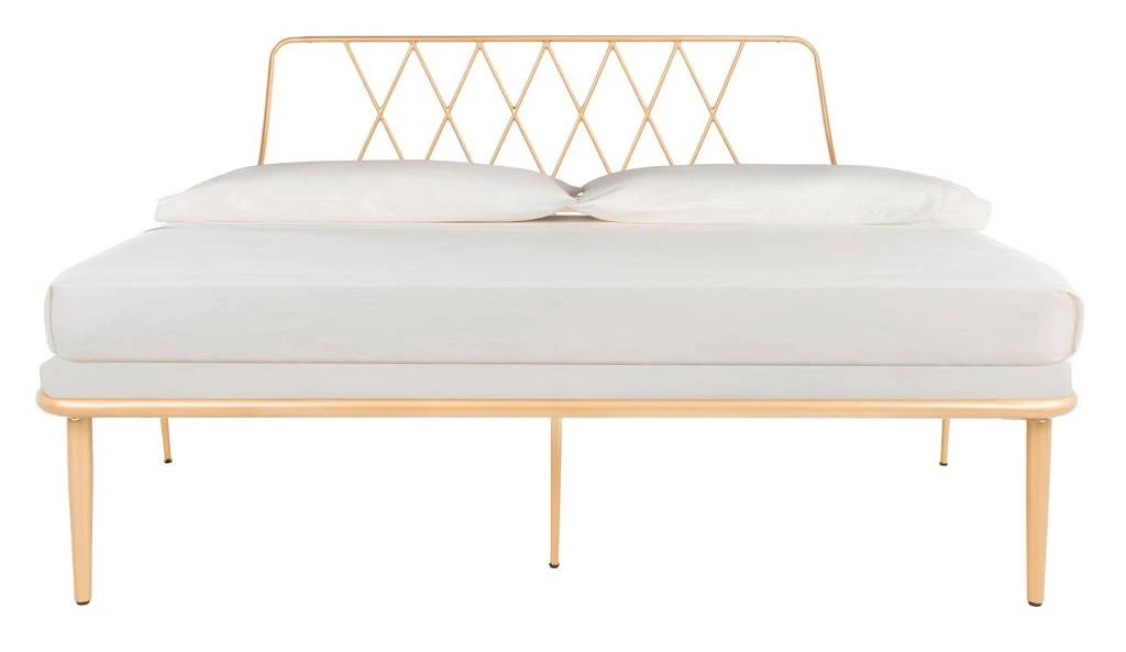 Fit for modern royalty, this contemporary bed ensures every dream is sweet. Its luxurious gold finish illuminates its sinuous curves, clean lines and slender legs for a decadent spin on minimalist style. It’s the grand focal point of any soothing oasis.