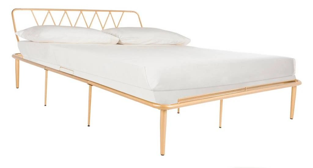 Fit for modern royalty, this contemporary bed ensures every dream is sweet. Its luxurious gold finish illuminates its sinuous curves, clean lines and slender legs for a decadent spin on minimalist style. It’s the grand focal point of any soothing oasis.