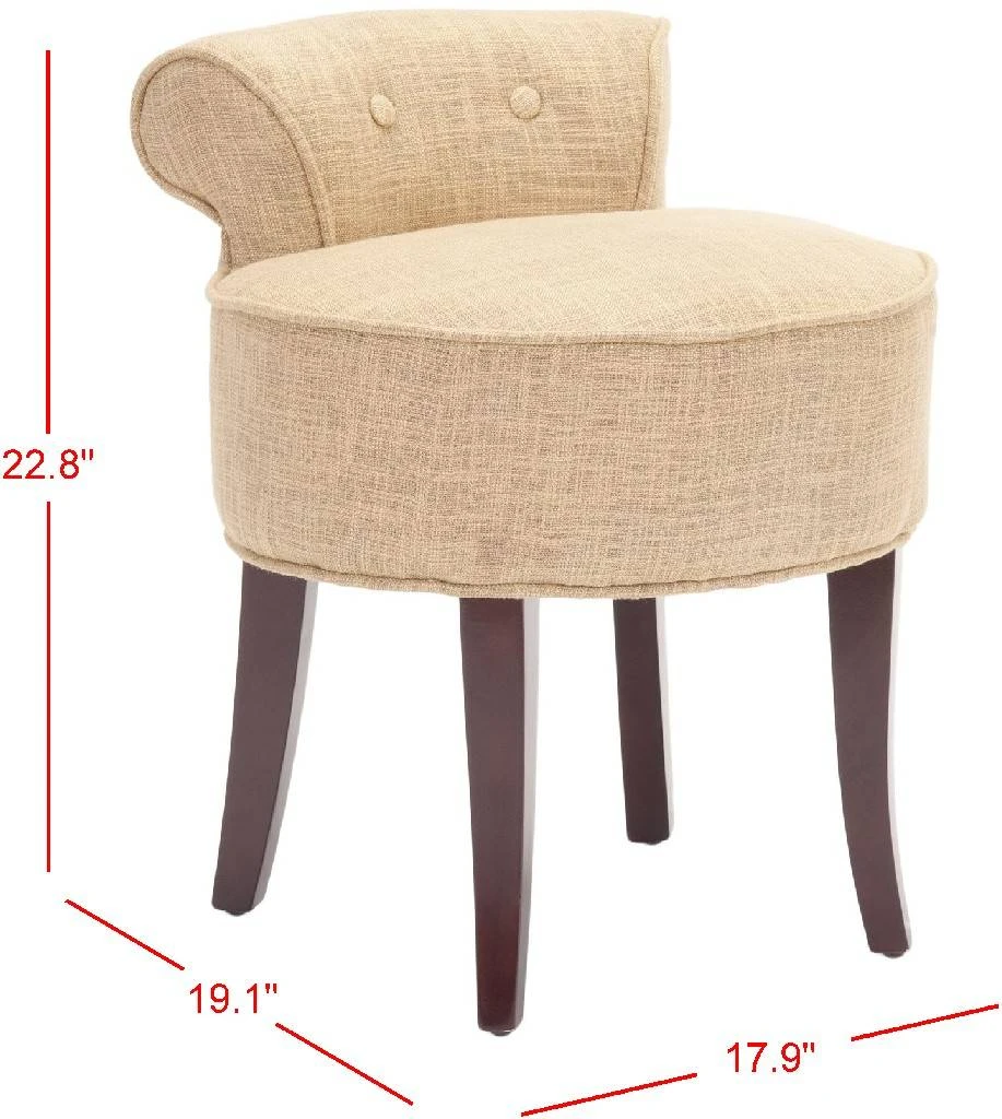The adorable Georgia vanity chair is petite enough to tuck in a or , and brimming with feminine style. Graceful cherry mahogany-toned birch wood legs, deep seat and diminutive button tufted back are designed for indulgent comfort. Upholstered with gold viscose/polyester blend fabric with self-welting for a decorator touch. To prevent overall soiling, frequent vacuuming or light brushing is recommended. Cushions and pillows should be turned on a weekly basis. Down-filled cushions should be brushed rather than vacuumed. Spot clean, using a mild water-free solvent or dry cleaning product. Only a professional cleaner should undertake a complete overall cleaning. The use of steam or water-based cleaners may cause excessive shrinking or staining.