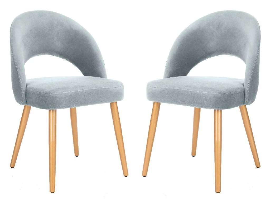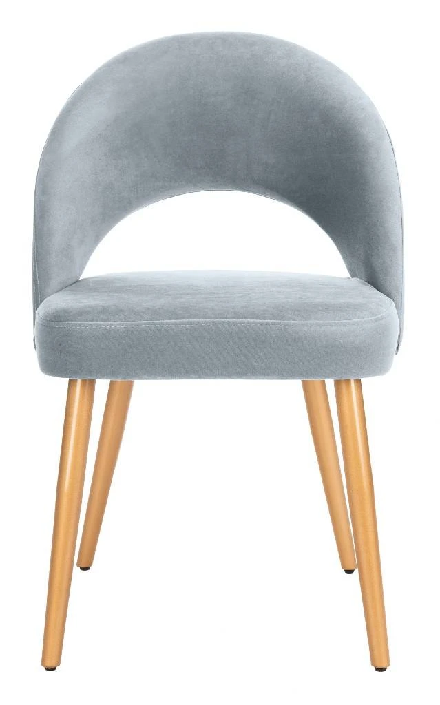 This elegant retro dining chair brings contemporary romance to the dining room. Designed with vintage-style charm, it’s upholstered in luxurious slate blue velvet and features a radiant gold metal finish. Its stylish cut-out back creates instant glamour for your dining room.