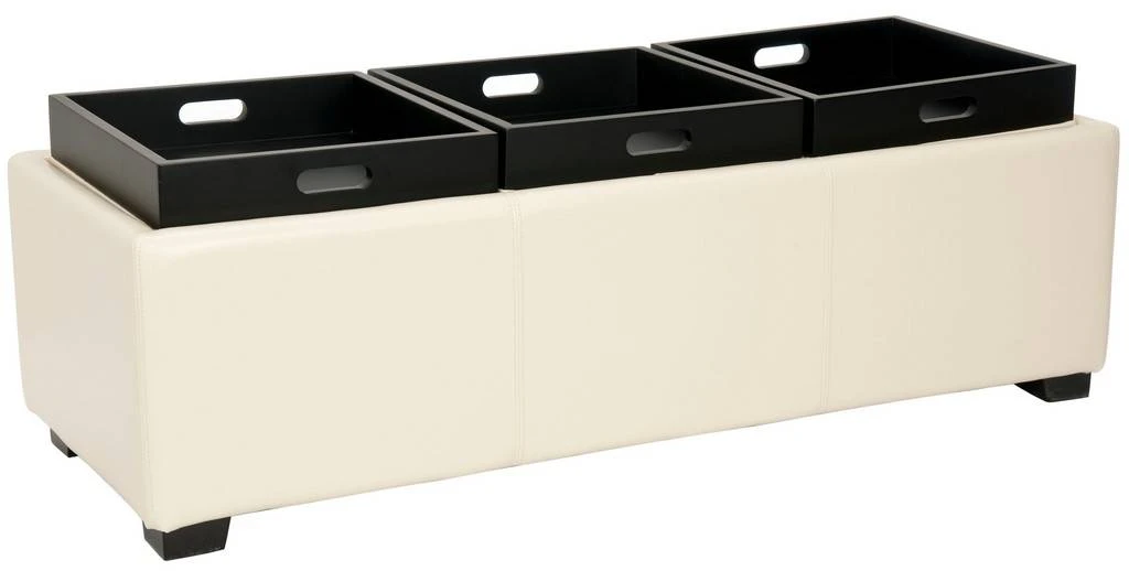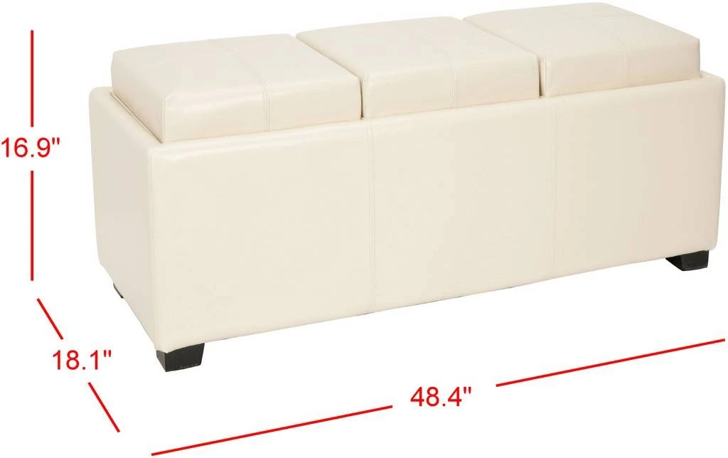 Perfect for any elegant environs, the Harrison Triple Tray Ottoman is a must have for any interior. Its tailored aesthetic and charming functionality make this 3 in 1 piece a modern classic. Crafted with flat cream bicast leather and birch wood in a black finish.