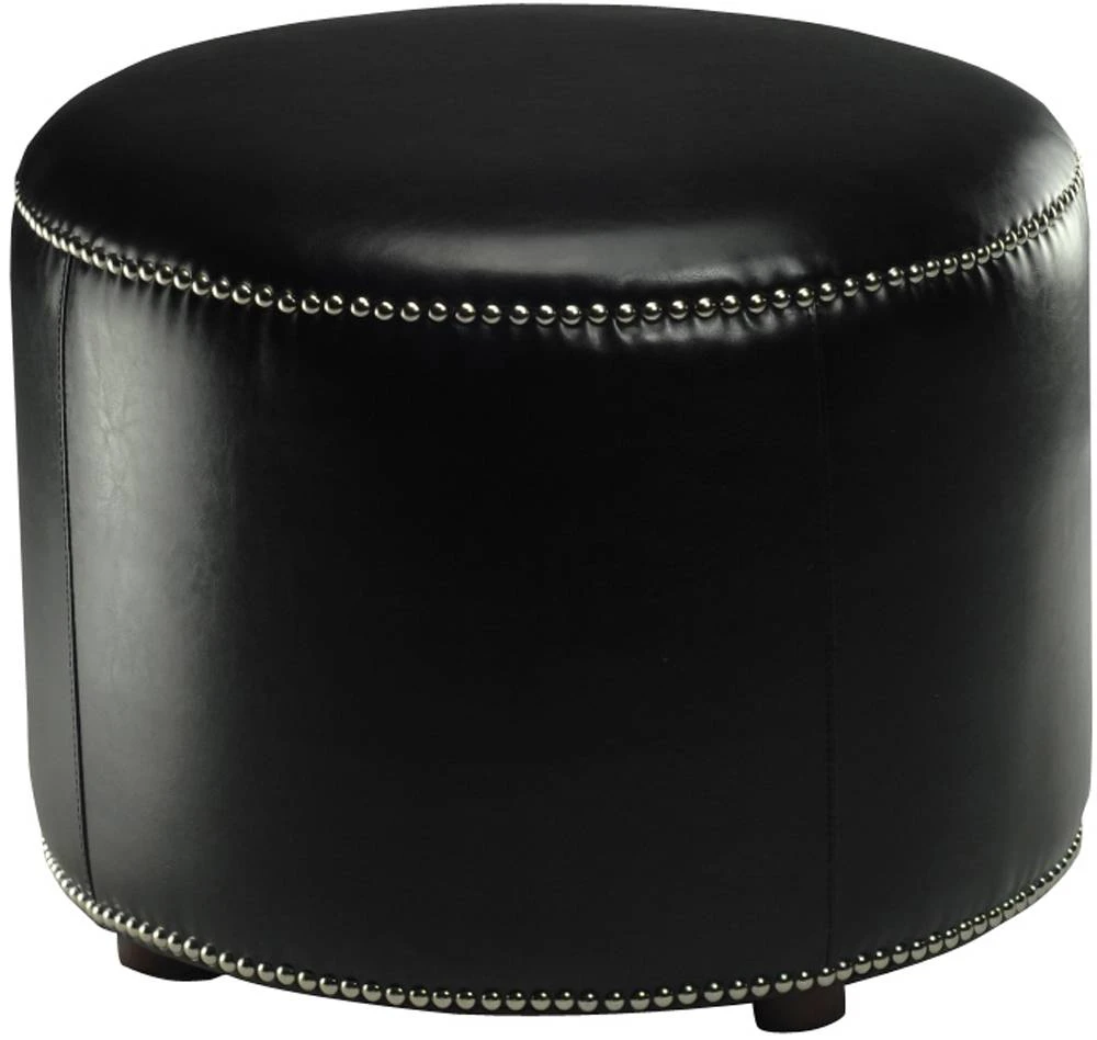 The antidote to boxy rooms with rectangular furniture, this classic round ottoman adds welcome curves to any living space. The Hogan ottoman’s sleek but durable bicast leather is accented with nail head trim, while black-finished beech wood legs provide transitional flair.